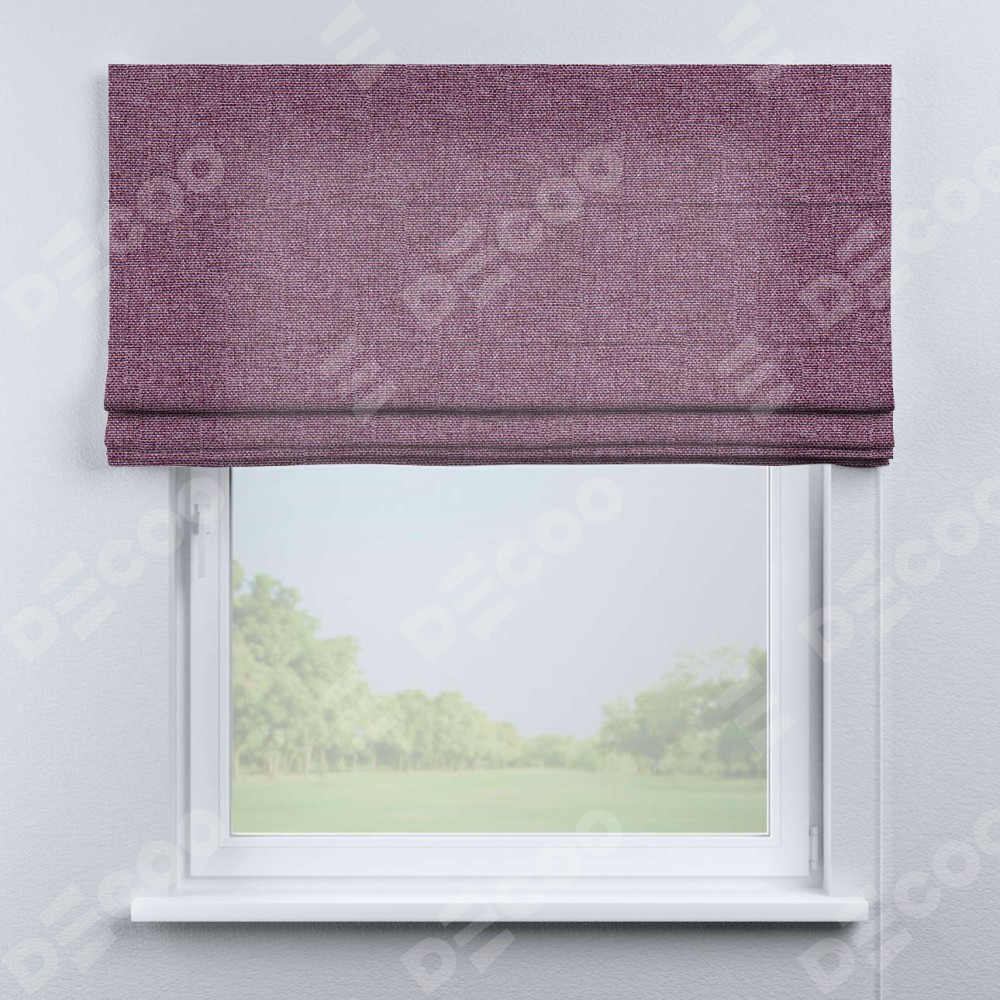 Римская штора производителя «Cortin», используется для проёма, пошита из ткани лён кашемир сиреневый, артикул ткани 21620. Имеет универсальный механизм и подходит для монтажа: на потолок, на стену и в нишу.