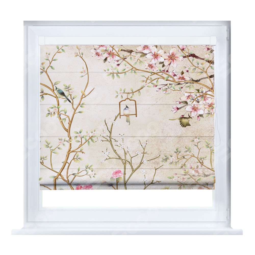 Римская штора производителя «Cortin», устанавливается на створку окна, пошита из ткани блэкаут с нанесением сублимационной печати «Весенний сад». Штора шьётся по индивидуальным размерам, для данного типа римской шторы возможная ширина от 35 до 150 см., высота до 250 см.