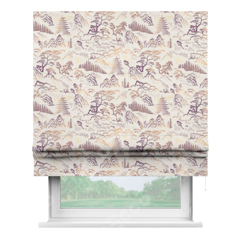 Римская штора производителя «Cortin», используется для проёма, пошита из ткани блэкаут с нанесением сублимационной печати «Горные вершины». Имеет универсальный механизм и подходит для монтажа: на потолок, на стену и в нишу.