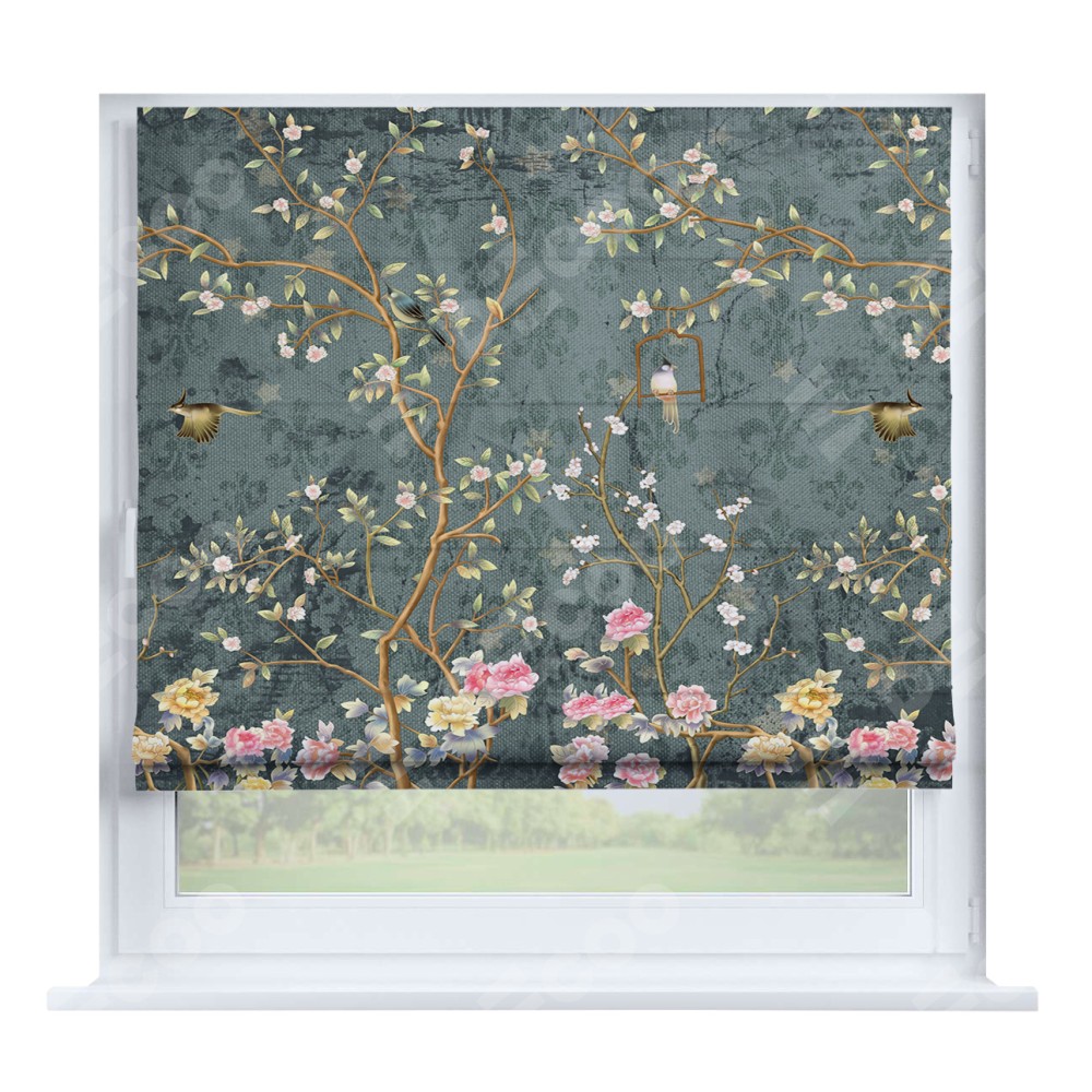 Римская штора производителя «Cortin», устанавливается на створку окна, пошита из ткани блэкаут с нанесением сублимационной печати «Тенистый сад». Штора шьётся по индивидуальным размерам, для данного типа римской шторы возможная ширина от 35 до 150 см., высота до 250 см.