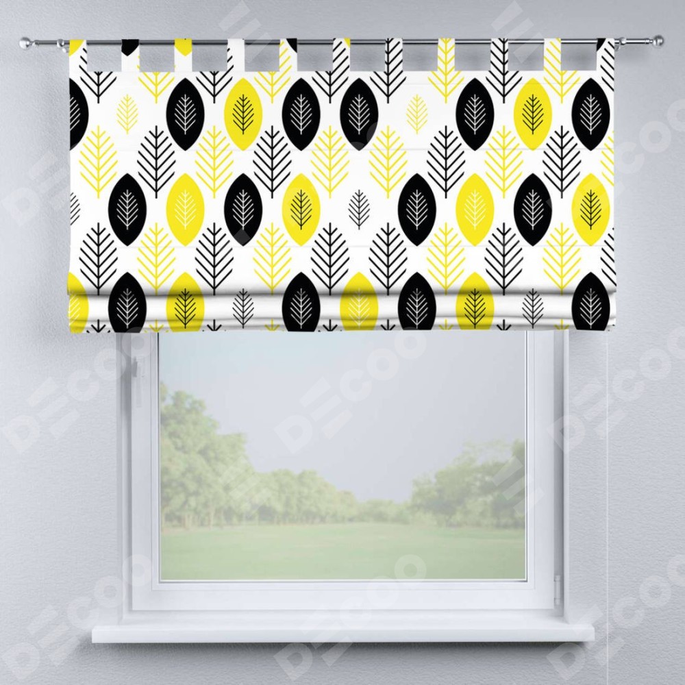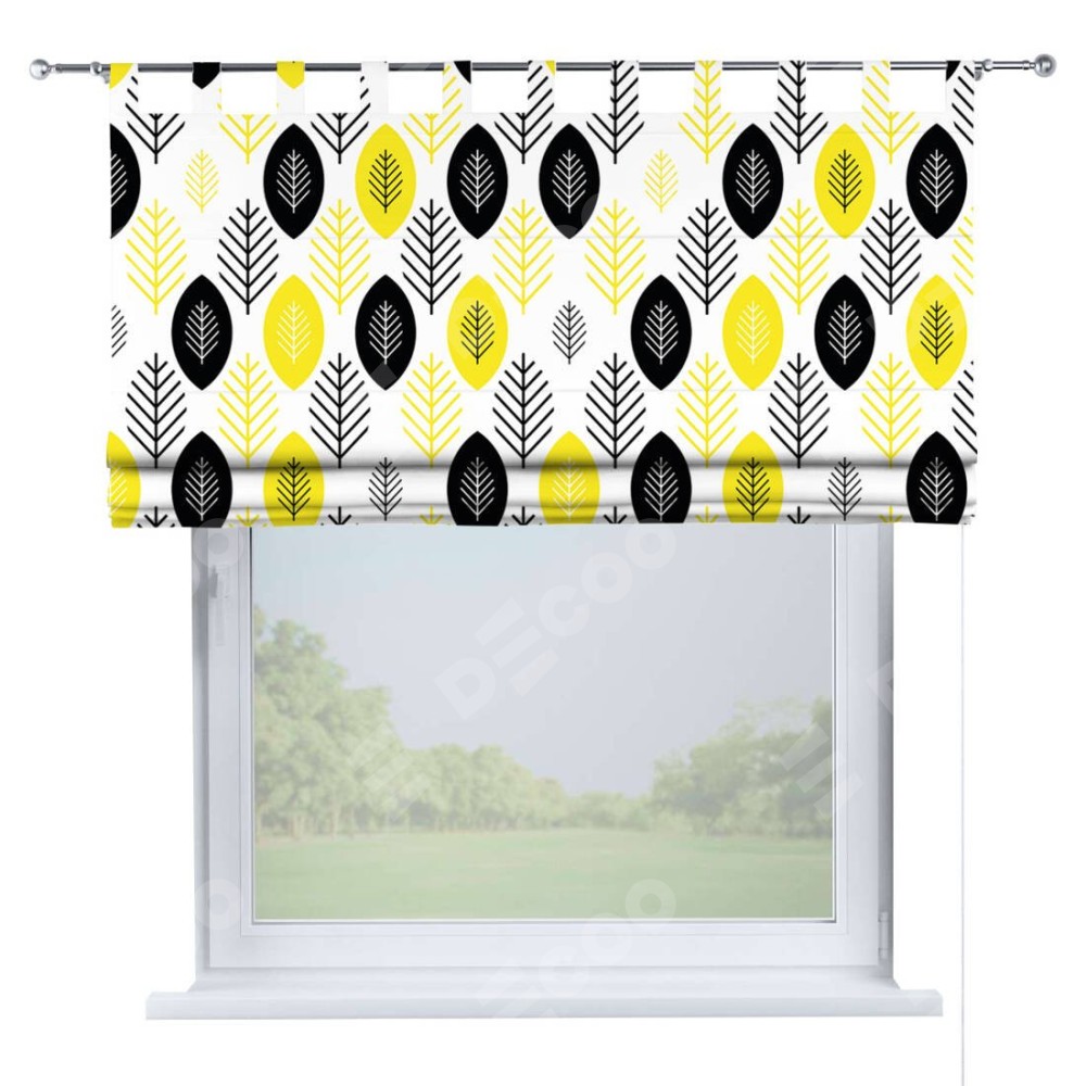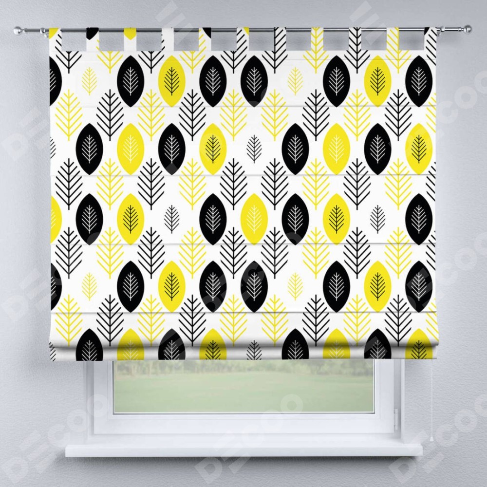 Римская штора производителя «Cortin», используется для проёма, пошита из ткани блэкаут с нанесением сублимационной печати «Черно-желтый модерн». Данная модель пошита на петлях, комплектуется на выбор круглым карнизом и подходит для монтажа на стену. Римская штора на петлях имеет простую систему регулировки высоты, отличительным преимуществом данной модели является простой способ монтажа. Достаточно повесить ее на трубу и штора готова!