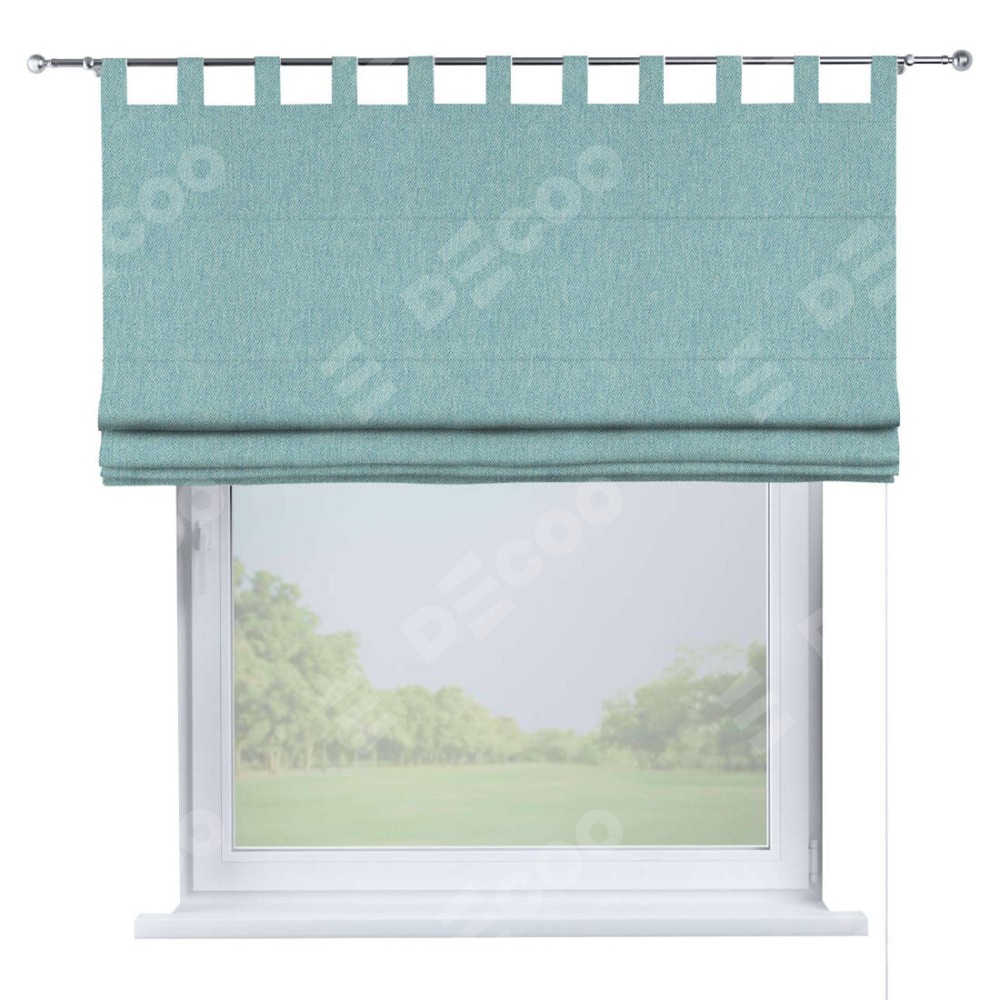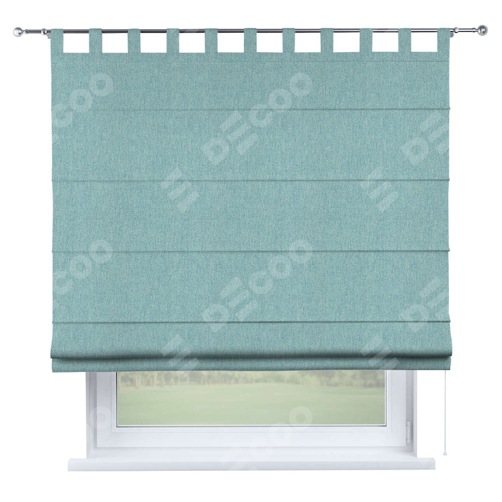 Римская штора производителя «Cortin», используется для проёма, пошита из ткани твид блэкаут небесно-голубой, артикул ткани 21578. Данная модель пошита на петлях, комплектуется на выбор круглым карнизом и подходит для монтажа на стену. Римская штора на петлях имеет простую систему регулировки высоты, отличительным преимуществом данной модели является простой способ монтажа. Достаточно повесить ее на трубу и штора готова!