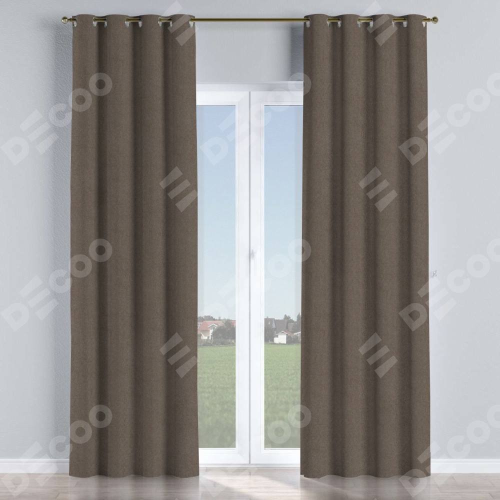 Комплект прямых штор, от производителя «Cortin», пошиты из ткани лён блэкаут коричневый, артикул ткани 69383. Данная модель пошита на люверсах, комплектуется на выбор круглым карнизом и подходит для монтажа на стену или потолок. Прямые шторы на люверсах шьются по стандарту с коэффициентом 1/2 (на 100 см. ширины проёма 200 см. ширины ткани), отличительным преимуществом данной модели является простой способ монтажа. Достаточно повесить ее на трубу и штора готова!