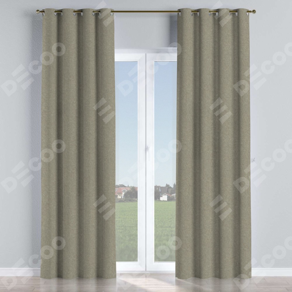 Комплект прямых штор, от производителя «Cortin», пошиты из ткани лён блэкаут светло-бежевый, артикул ткани 69445. Данная модель пошита на люверсах, комплектуется на выбор круглым карнизом и подходит для монтажа на стену или потолок. Прямые шторы на люверсах шьются по стандарту с коэффициентом 1/2 (на 100 см. ширины проёма 200 см. ширины ткани), отличительным преимуществом данной модели является простой способ монтажа. Достаточно повесить ее на трубу и штора готова!