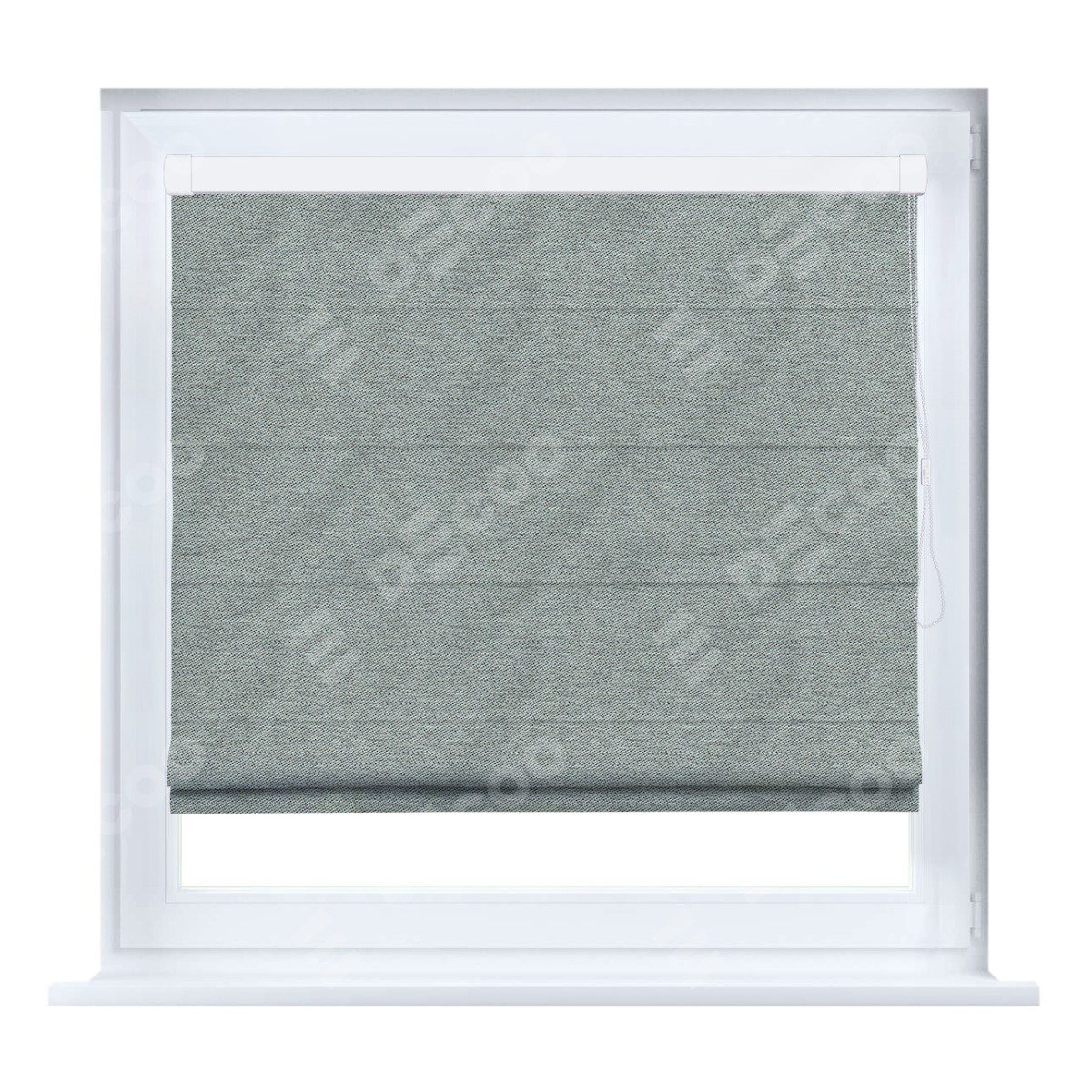 Римская штора кассетного типа, производителя «Cortin», устанавливается только на пластиковые окна и прилегает к стеклопакету, пошита из ткани твид блэкаут светло-серый, артикул 21576.