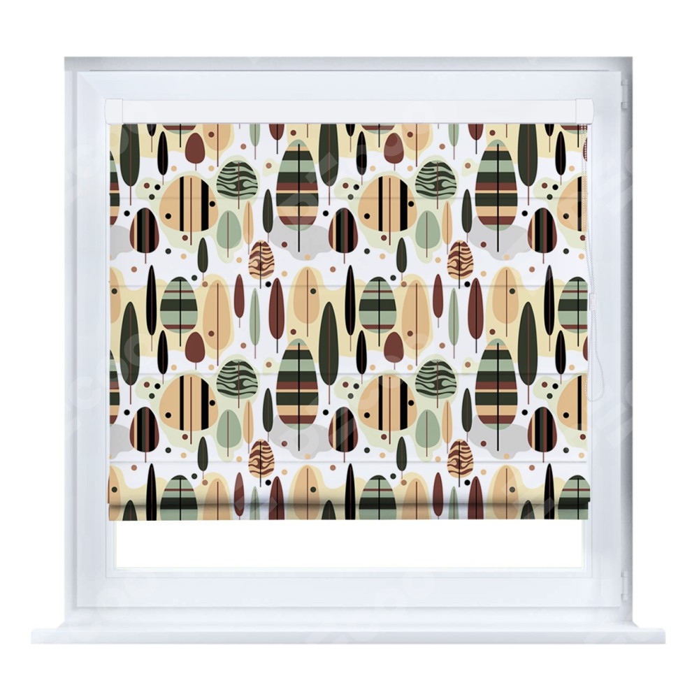 Римская штора производителя «Cortin», устанавливается на створку окна, пошита из ткани блэкаут с нанесением сублимационной печати «Деревья в полоску». Штора шьётся по индивидуальным размерам, для данного типа римской шторы возможная ширина от 35 до 150 см., высота до 250 см.