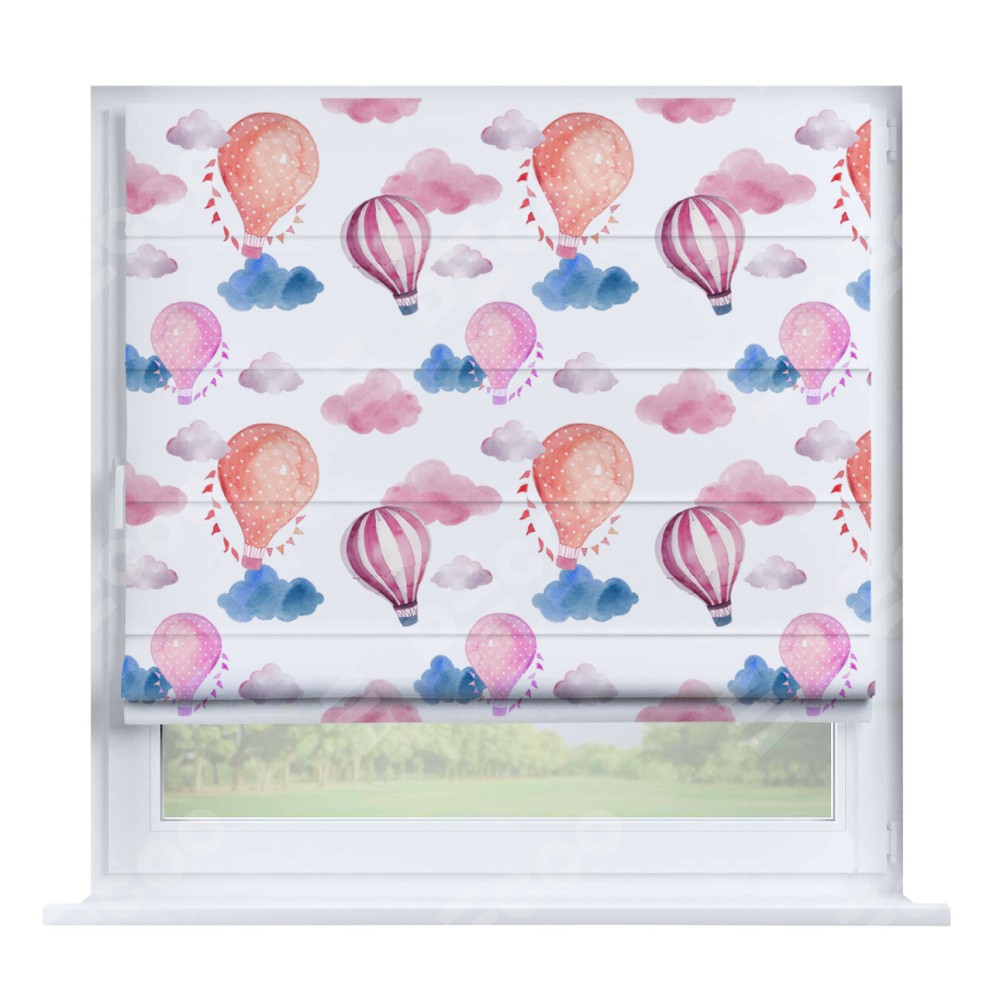 Римская штора производителя «Cortin», устанавливается на створку окна, пошита из ткани блэкаут с нанесением сублимационной печати «Полёт в облаках». Штора шьётся по индивидуальным размерам, для данного типа римской шторы возможная ширина от 35 до 150 см., высота до 250 см.