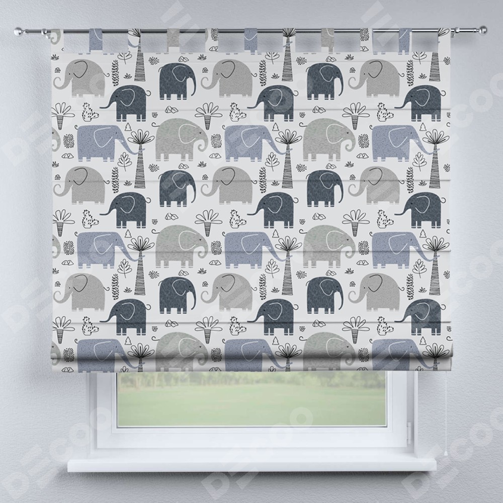 Римская штора производителя «Cortin», используется для проёма, пошита из ткани блэкаут с нанесением сублимационной печати «Серые слоники». Данная модель пошита на петлях, комплектуется на выбор круглым карнизом и подходит для монтажа на стену. Римская штора на петлях имеет простую систему регулировки высоты, отличительным преимуществом данной модели является простой способ монтажа. Достаточно повесить ее на трубу и штора готова!