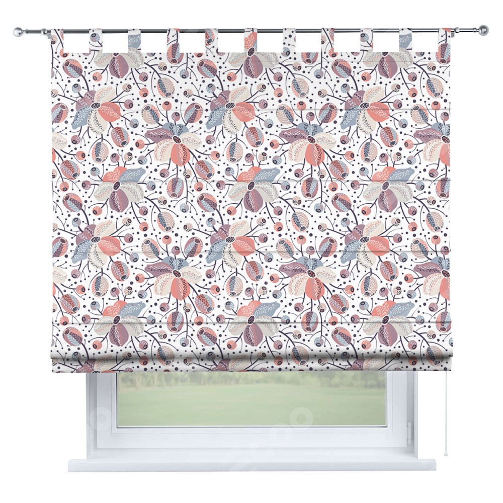 Римская штора производителя «Cortin», используется для проёма, пошита из ткани блэкаут с нанесением сублимационной печати «Цветочный микс». Данная модель пошита на петлях, комплектуется на выбор круглым карнизом и подходит для монтажа на стену. Римская штора на петлях имеет простую систему регулировки высоты, отличительным преимуществом данной модели является простой способ монтажа. Достаточно повесить ее на трубу и штора готова!