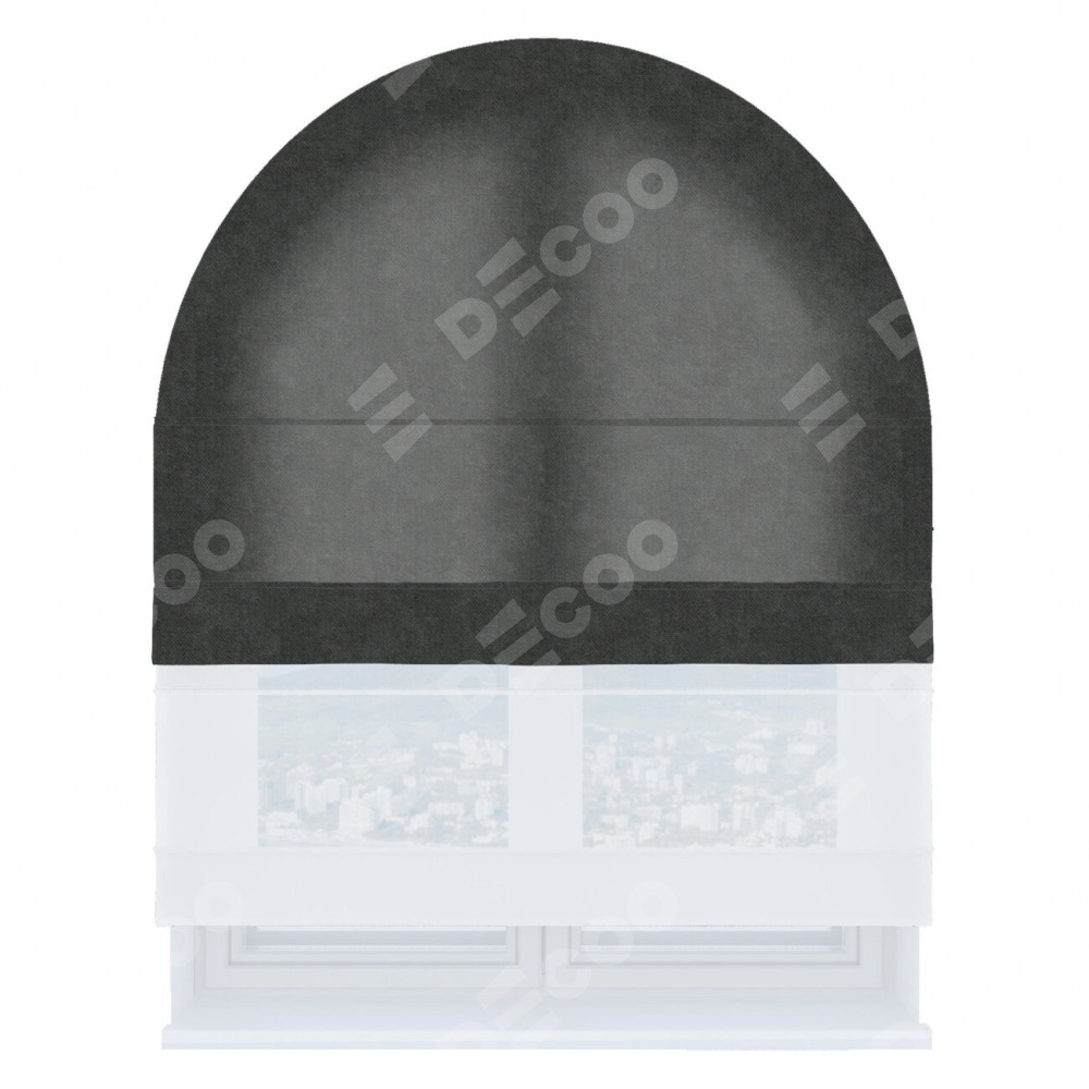 Римская штора день-ночь производителя «Cortin», используется для арочного проёма, пошита из двух полотен, с лицевой стороны вельвет тёмно-серый артикул 33811, вторая ткань тюль (по стандарту комплектуется тюль белого цвета артикул V-01). Штора шьётся по индивидуальным размерам, для данного типа римской шторы возможная ширина от 60 до 300 см. Удобное управление каждой шторой отдельно.