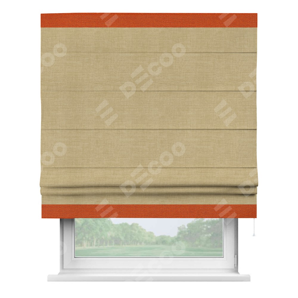 Римская штора «Кортин» с кантом Горизонт, для проема, ткань лён бежевый