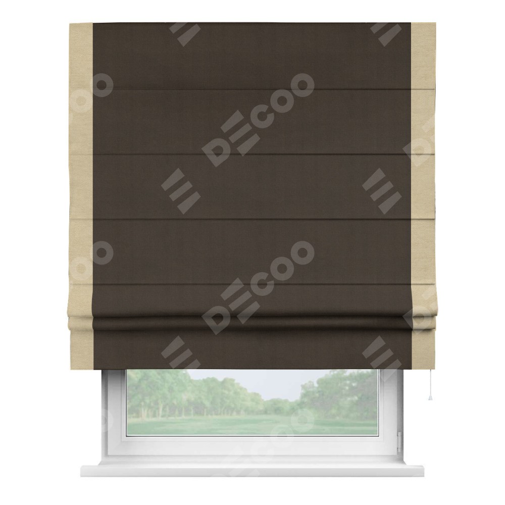Римская штора «Кортин» с кантом Стрим Дуо, для проема, ткань вельвет тёмно-коричневый