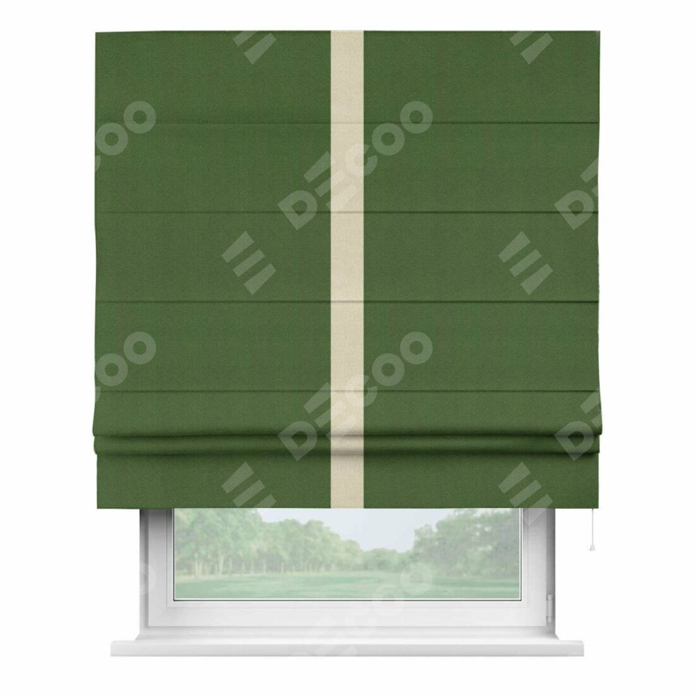 Римская штора «Кортин» с кантом Хайвэй, для проема, ткань блэкаут однотонный зелёный перламутр