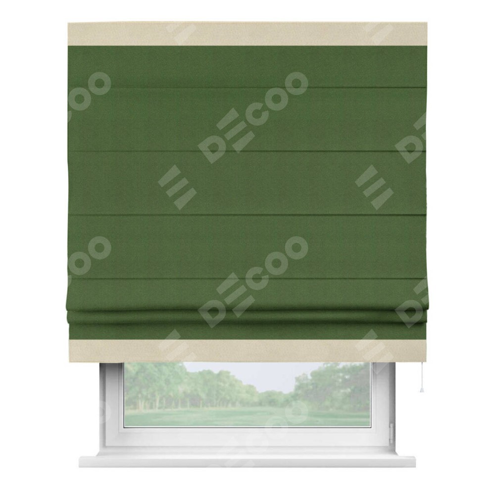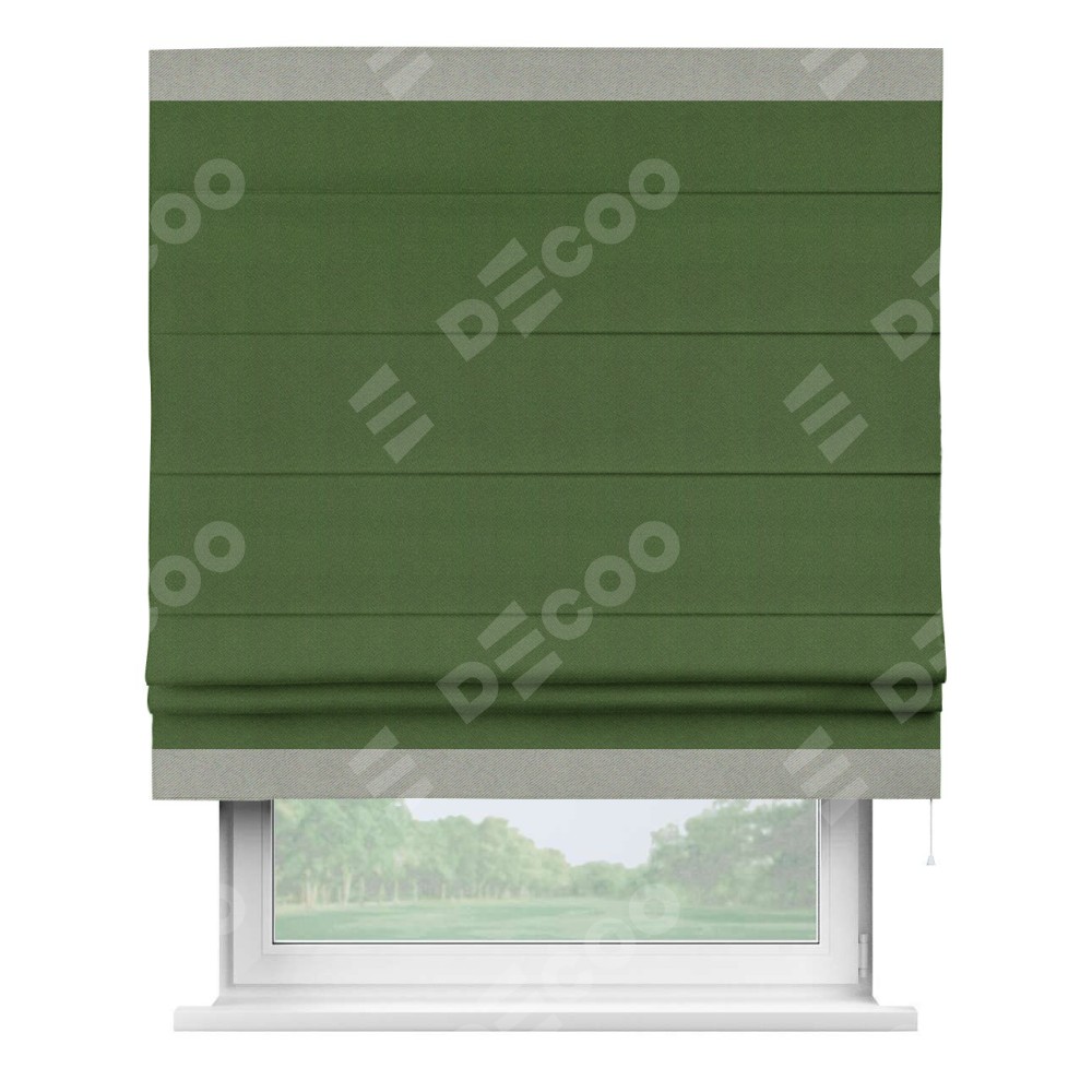 Римская штора «Кортин» с кантом Горизонт, для проема, ткань блэкаут однотонный зелёный перламутр
