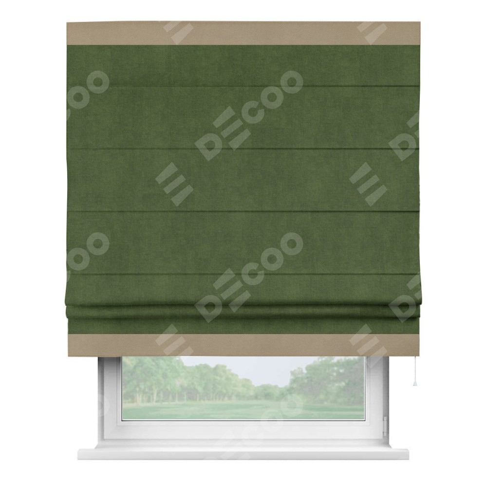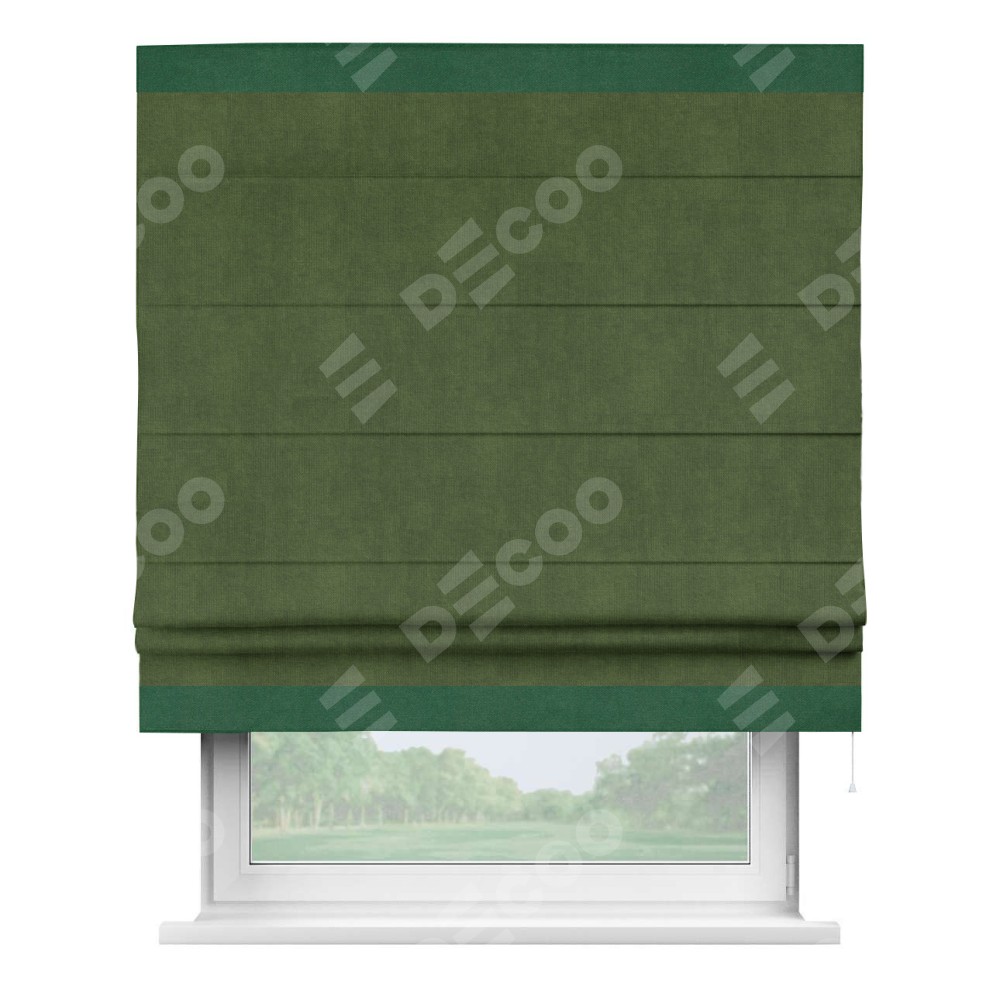 Римская штора «Кортин» с кантом Горизонт, для проема, ткань вельвет тёмно-салатовый