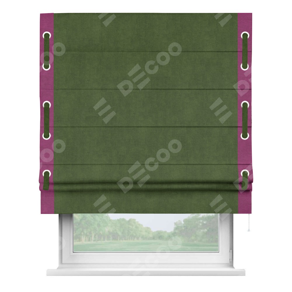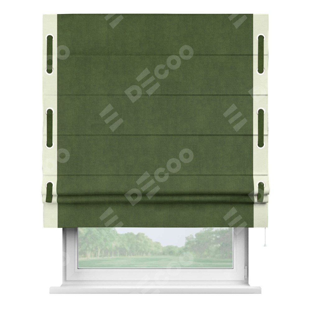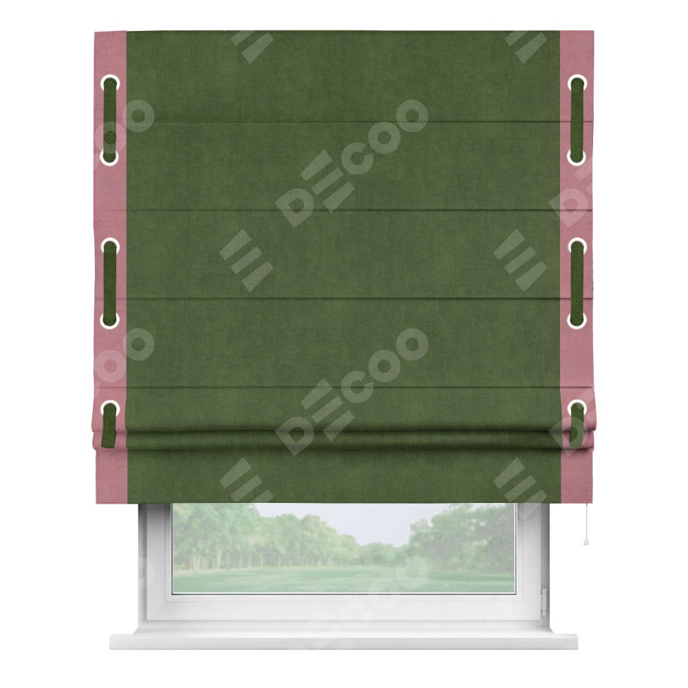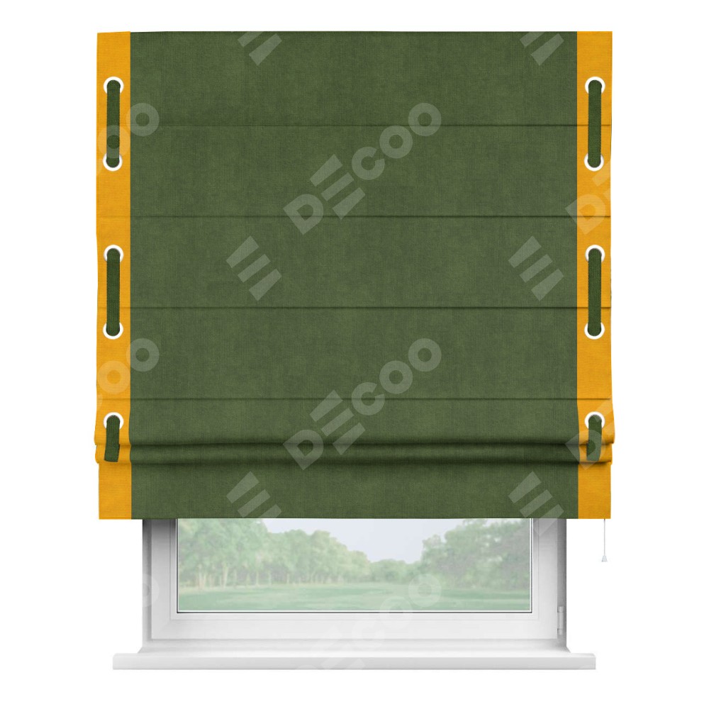 Римская штора «Кортин» с кантом Стрим Дуо (люверсы с пояском), для проема, ткань вельвет тёмно-салатовый