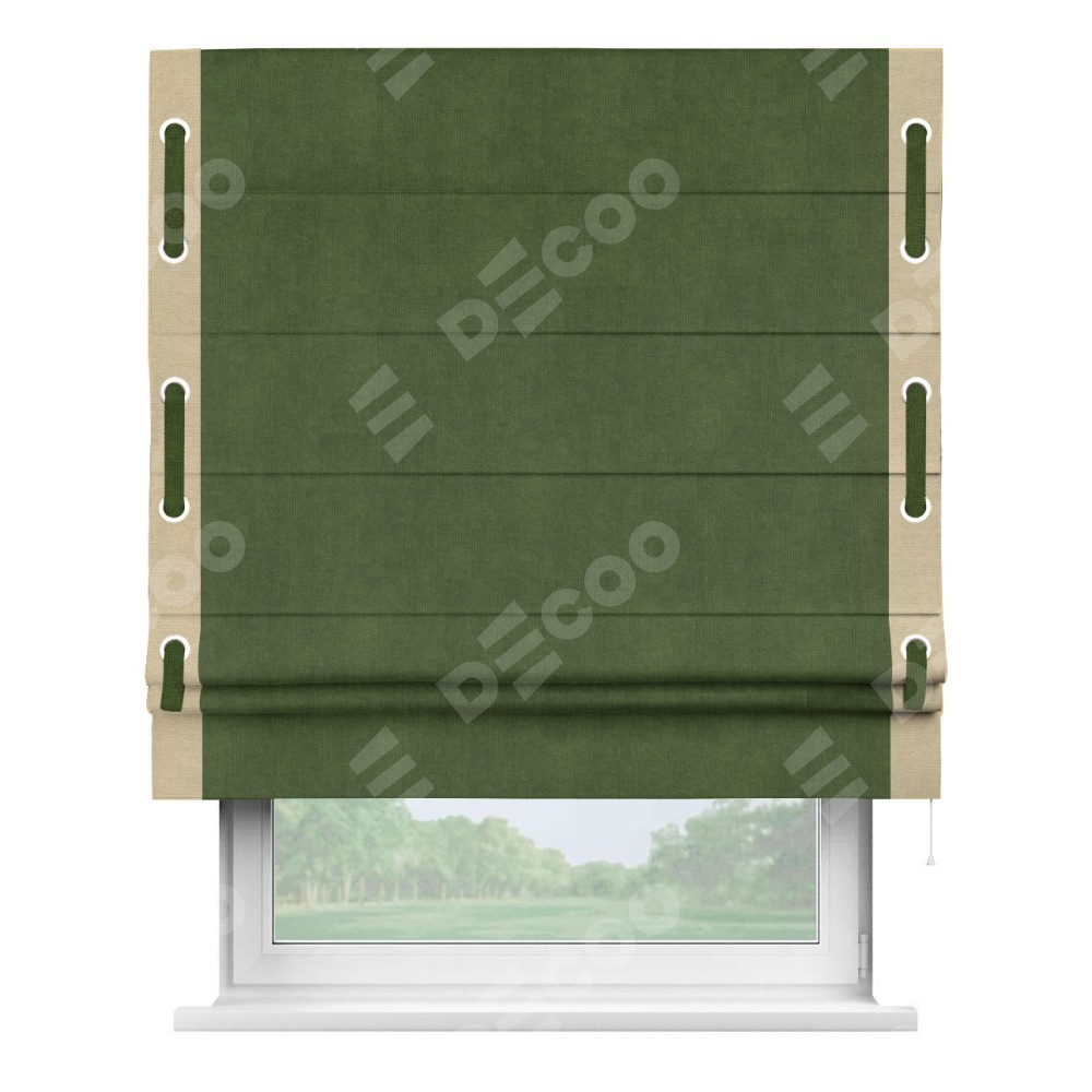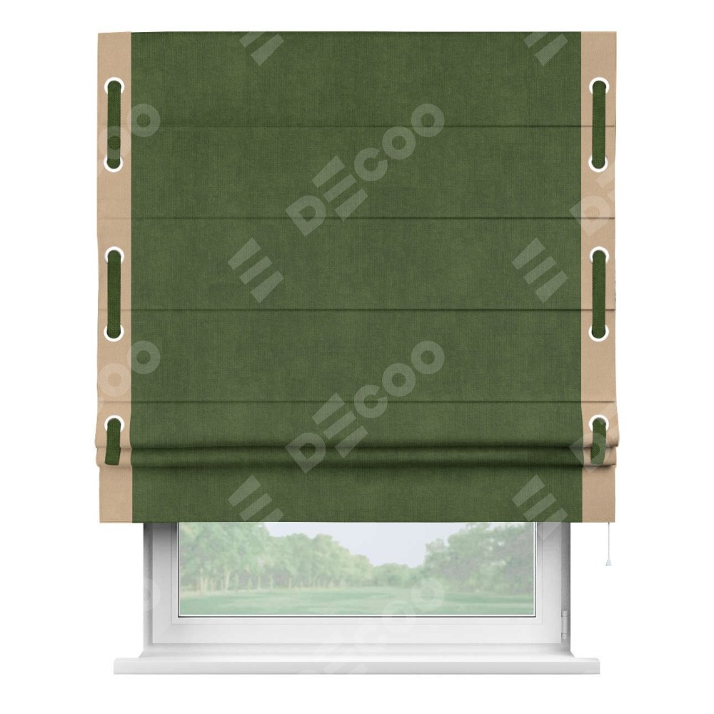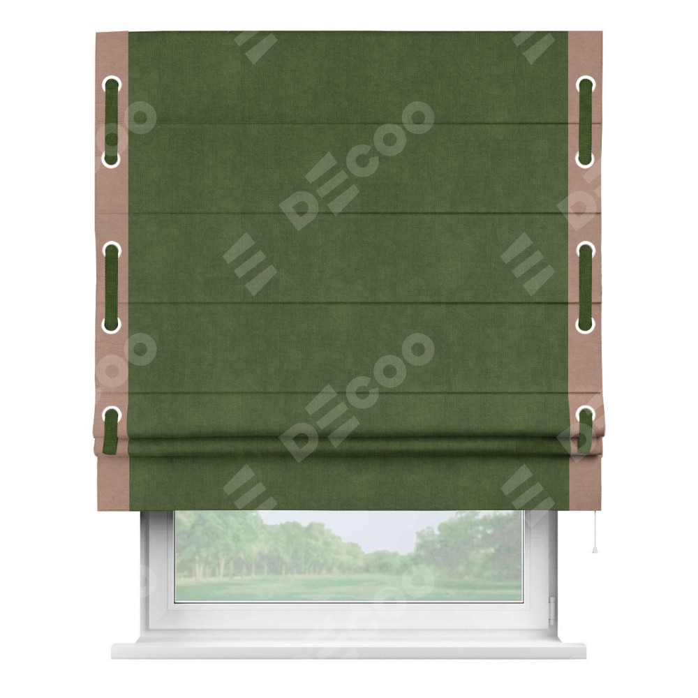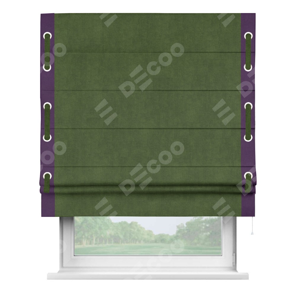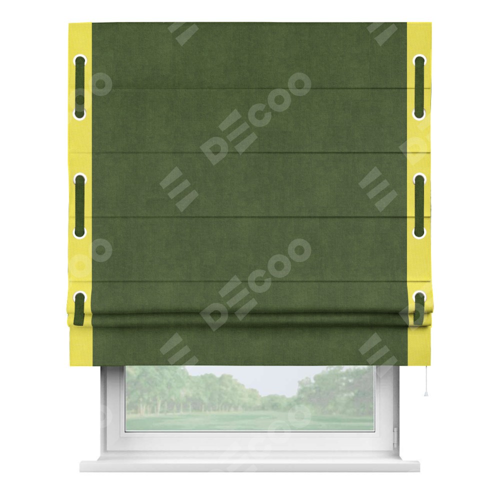 Римская штора «Кортин» с кантом Стрим Дуо (люверсы с пояском), для проема, ткань вельвет тёмно-салатовый