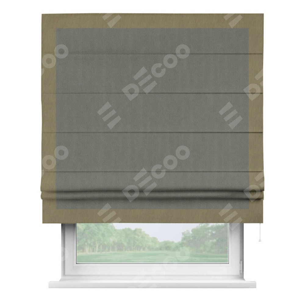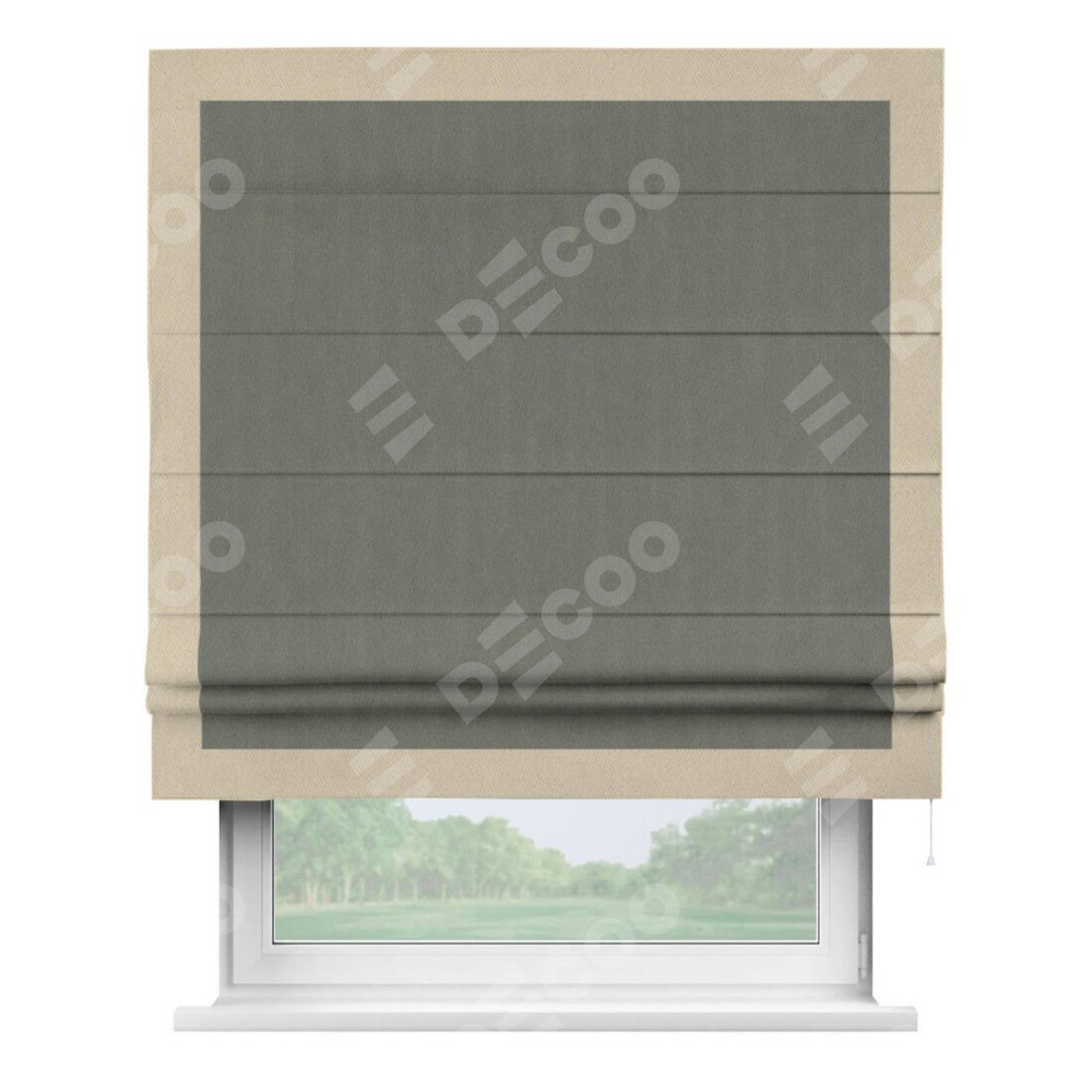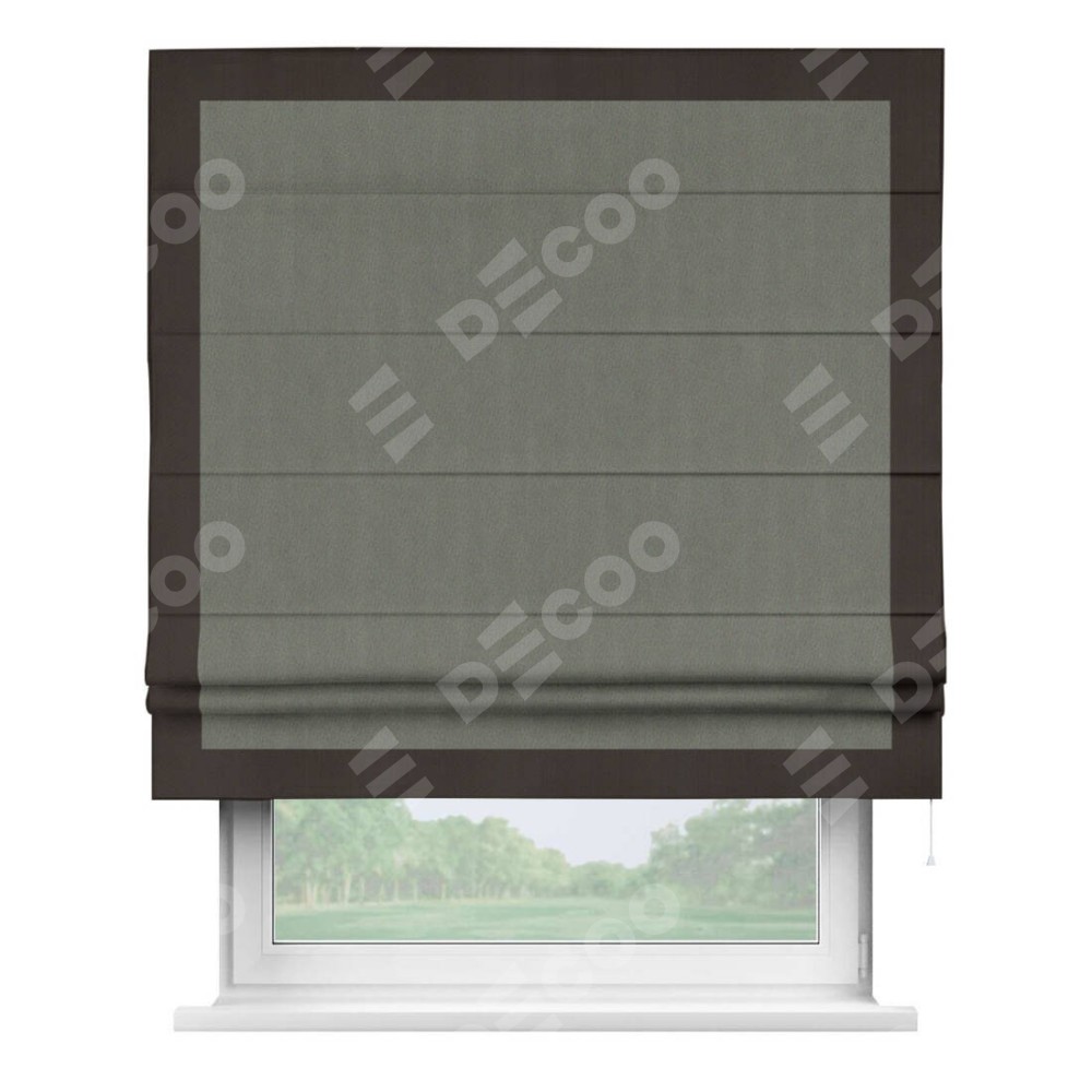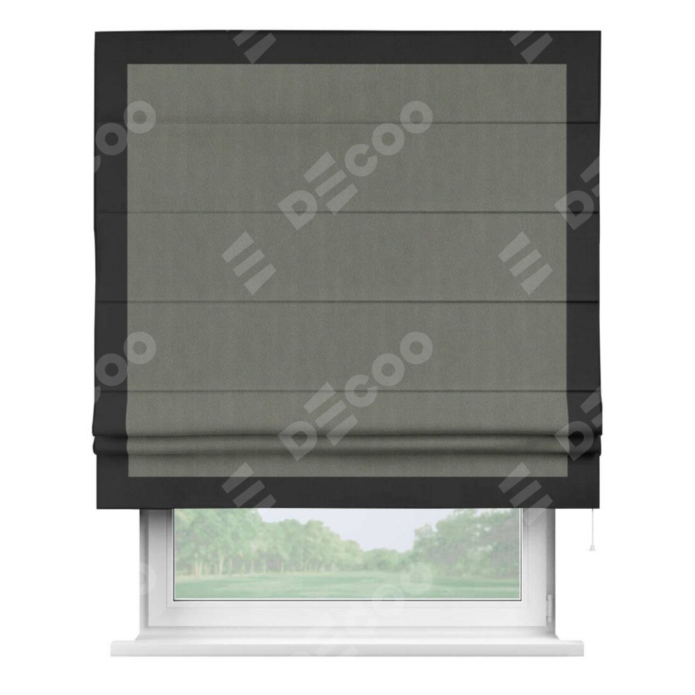 Римская штора «Кортин» с кантом Чесс, для проема, ткань блэкаут однотонный тёмно-серый