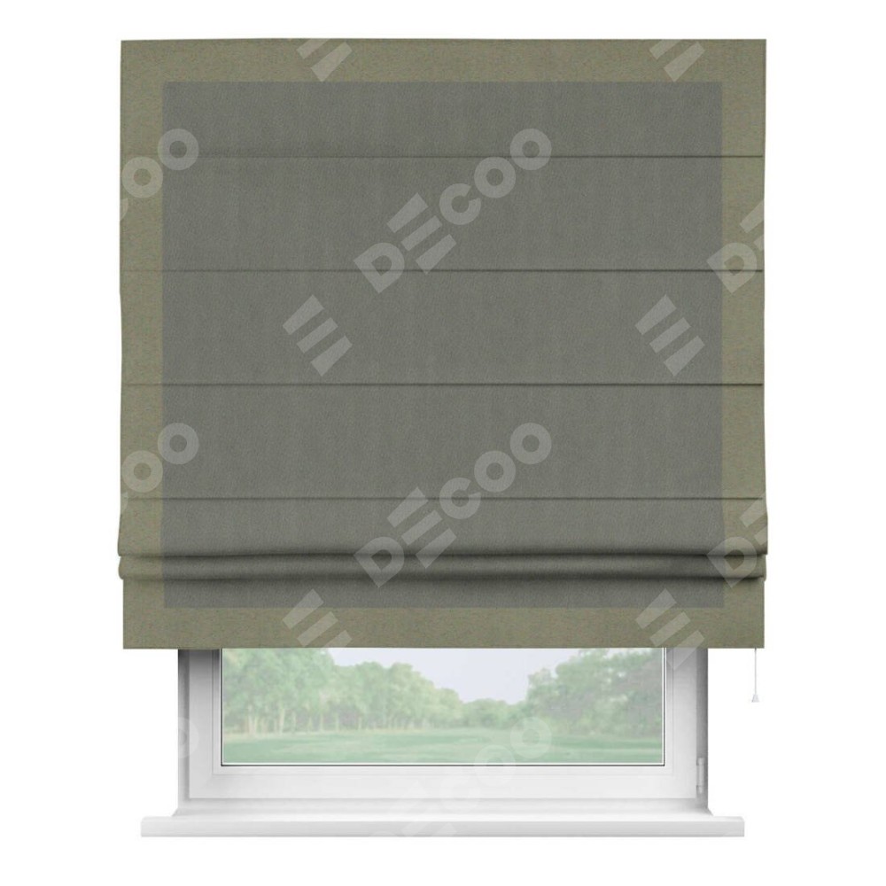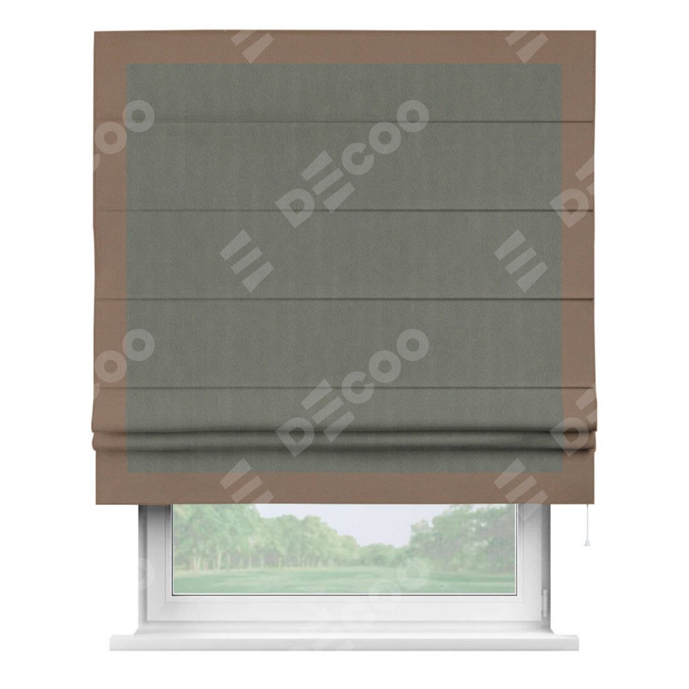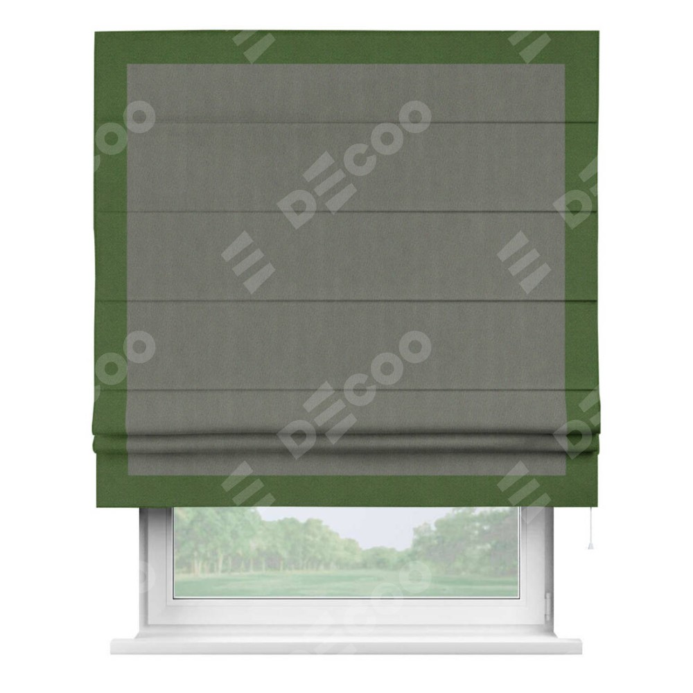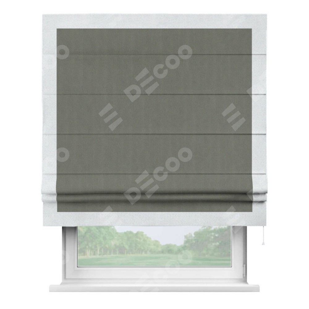 Римская штора «Кортин» с кантом Чесс, для проема, ткань блэкаут однотонный тёмно-серый