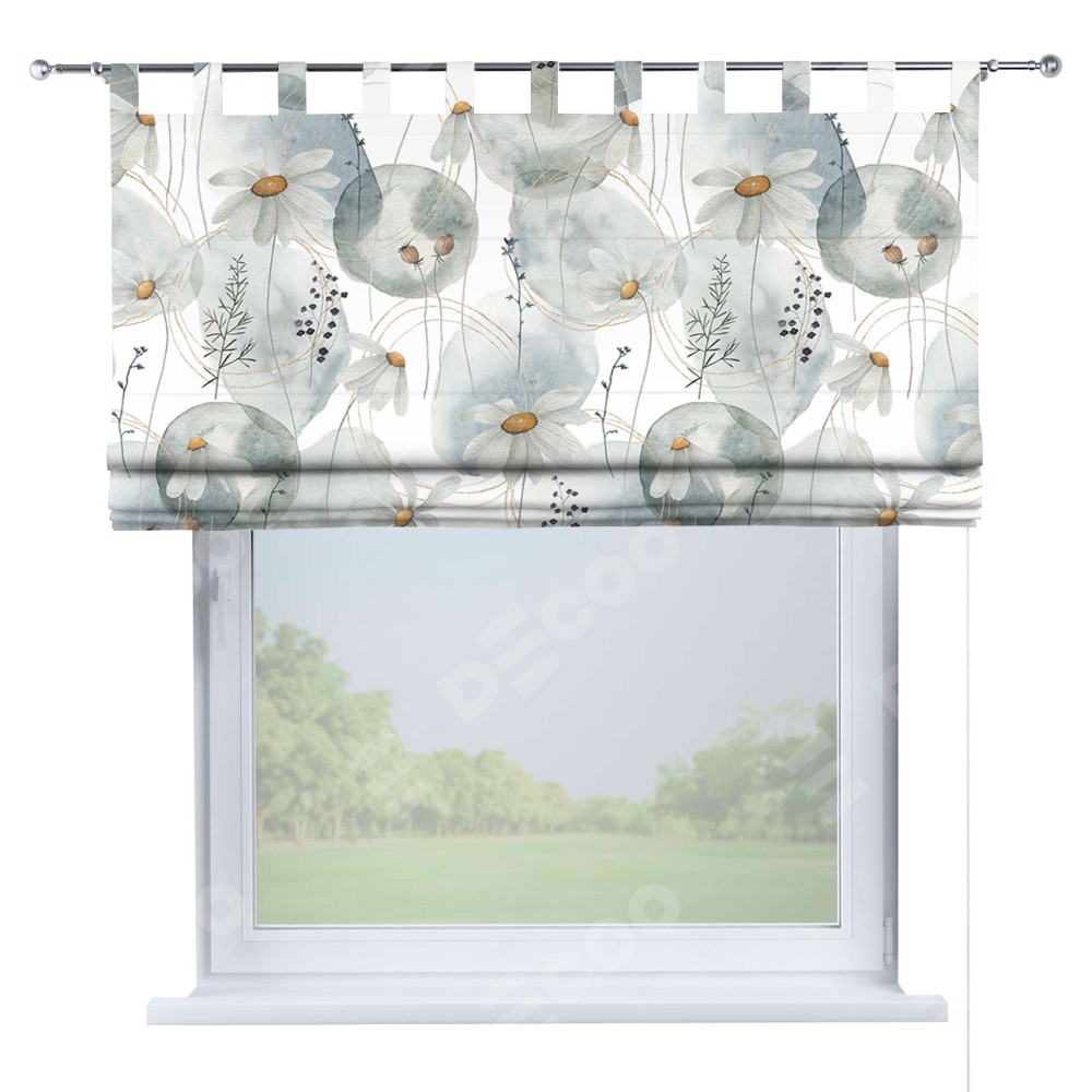 Римская штора производителя «Cortin», используется для проёма, пошита из ткани блэкаут с нанесением сублимационной печати «Ромашки акварель». Данная модель пошита на петлях, комплектуется на выбор круглым карнизом и подходит для монтажа на стену. Римская штора на петлях имеет простую систему регулировки высоты, отличительным преимуществом данной модели является простой способ монтажа. Достаточно повесить ее на трубу и штора готова!