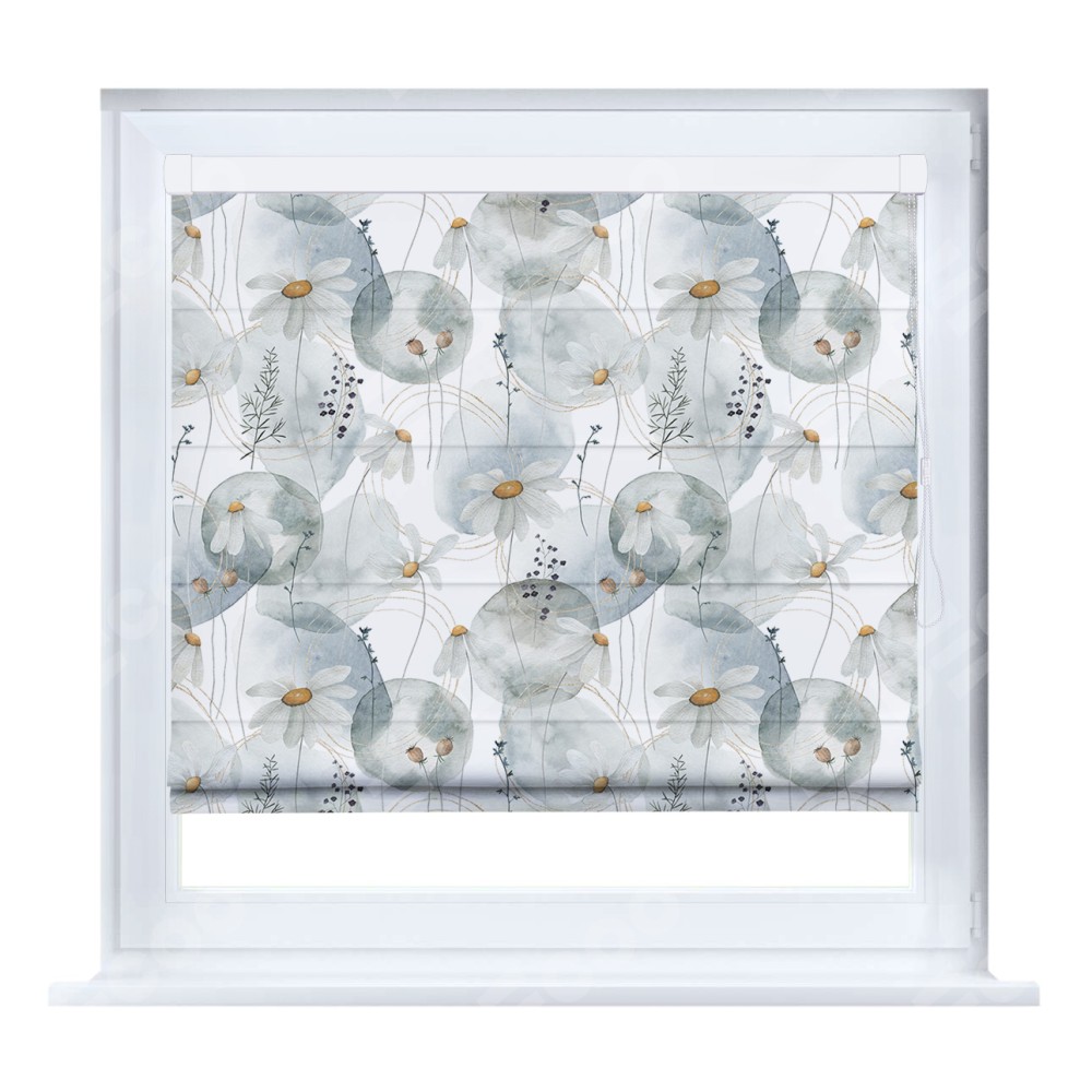 Римская штора «Кортин» на створку «Ромашки акварель»