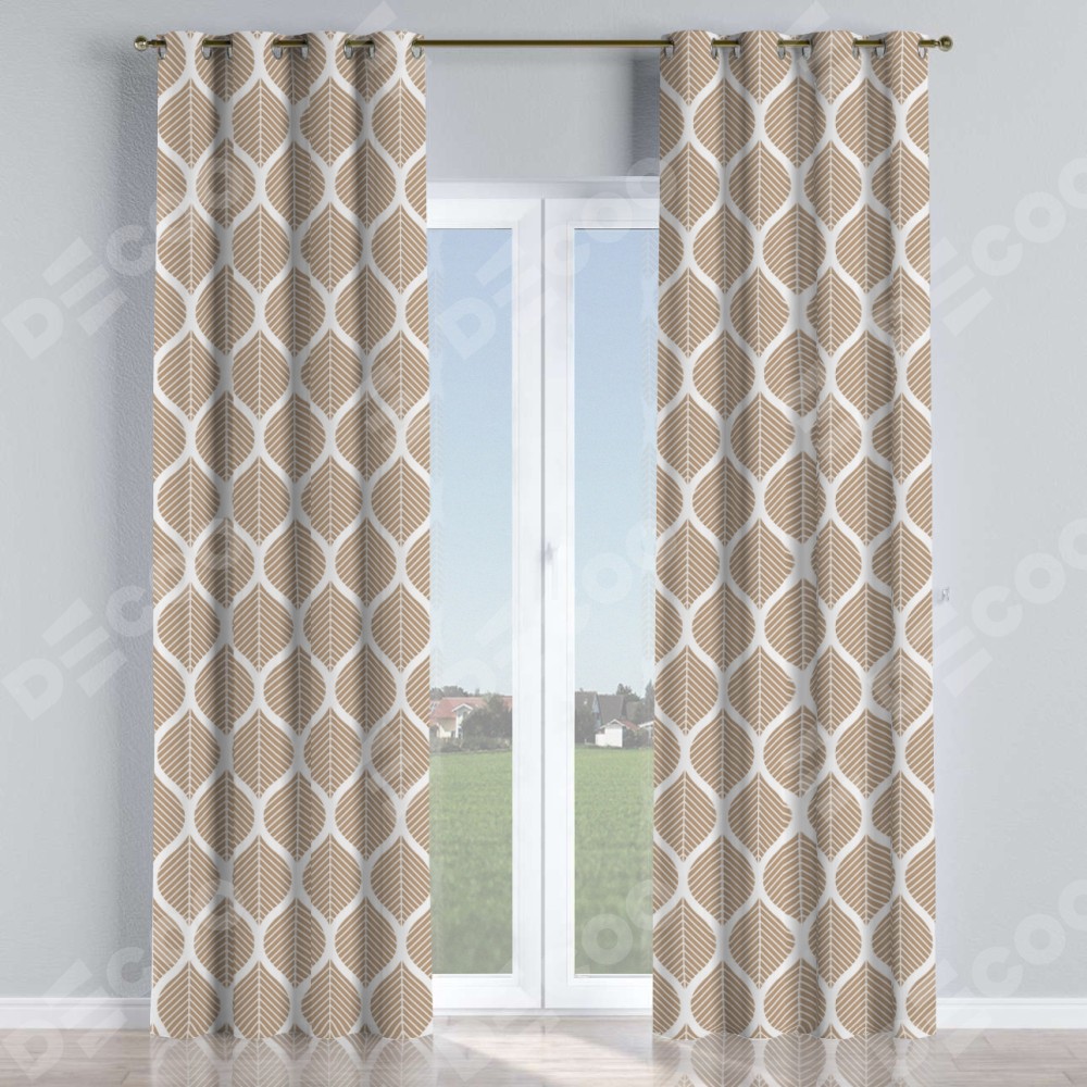 Комплект прямых штор, от производителя «Cortin», пошиты из ткани блэкаут с нанесением сублимационной печати «Листья геометрия». Данная модель пошита на люверсах, комплектуется на выбор круглым карнизом и подходит для монтажа на стену или потолок. Прямые шторы на люверсах шьются по стандарту с коэффициентом 1/2 (на 100 см. ширины проёма 200 см. ширины ткани), отличительным преимуществом данной модели является простой способ монтажа. Достаточно повесить ее на трубу и штора готова!