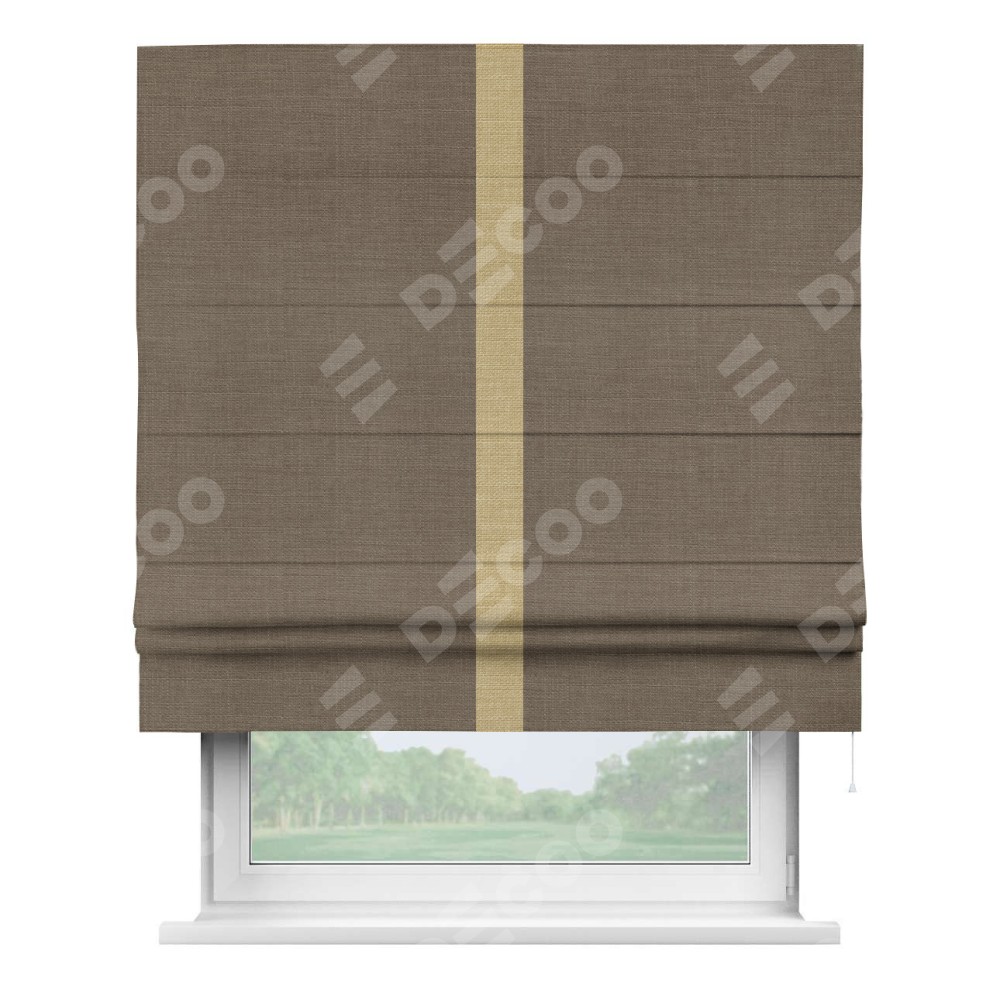 Римская штора «Кортин» с кантом Хайвэй, для проема, ткань лён мокко