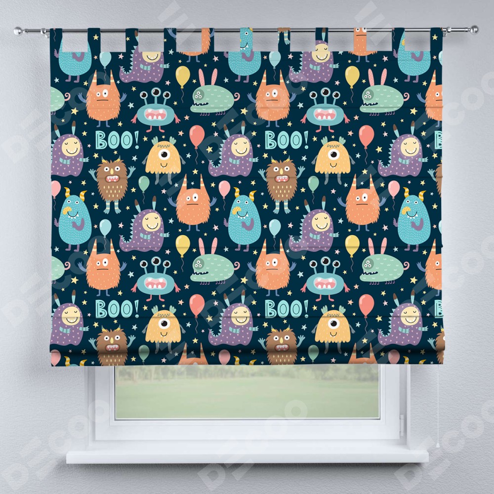 Римская штора производителя «Cortin», используется для проёма, пошита из ткани блэкаут с нанесением сублимационной печати «Звёздные страшилки». Данная модель пошита на петлях, комплектуется на выбор круглым карнизом и подходит для монтажа на стену. Римская штора на петлях имеет простую систему регулировки высоты, отличительным преимуществом данной модели является простой способ монтажа. Достаточно повесить ее на трубу и штора готова!