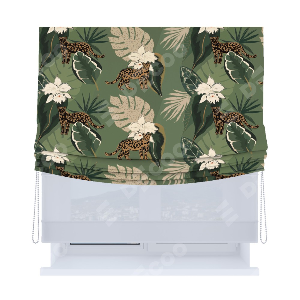 Римская штора «Кортин», день-ночь с мягкими складками, «В тропическом лесу»