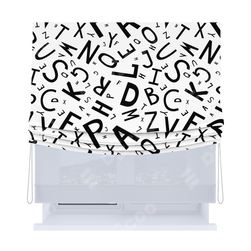 Римская штора «Кортин», день-ночь с мягкими складками, «Литеры на белом»