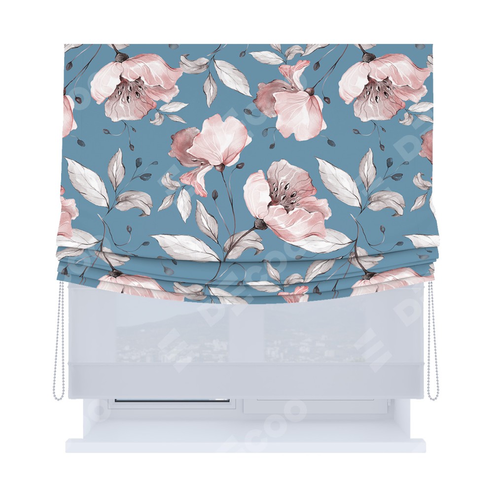 Римская штора день-ночь производителя «Cortin», используется для проёма, пошита из двух полотен, с лицевой блэкаут с нанесением сублимационной печати «Розовая лагуна», вторая ткань тюль (по стандарту комплектуется тюль белого цвета артикул V-01). Имеет универсальный механизм и подходит для монтажа: на потолок, на стену и в нишу. Удобное управление каждой шторой отдельно.
