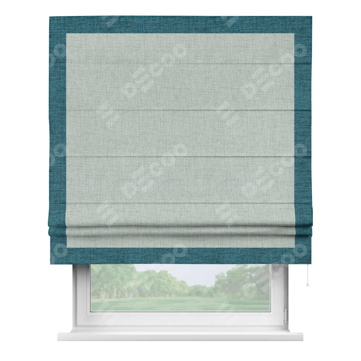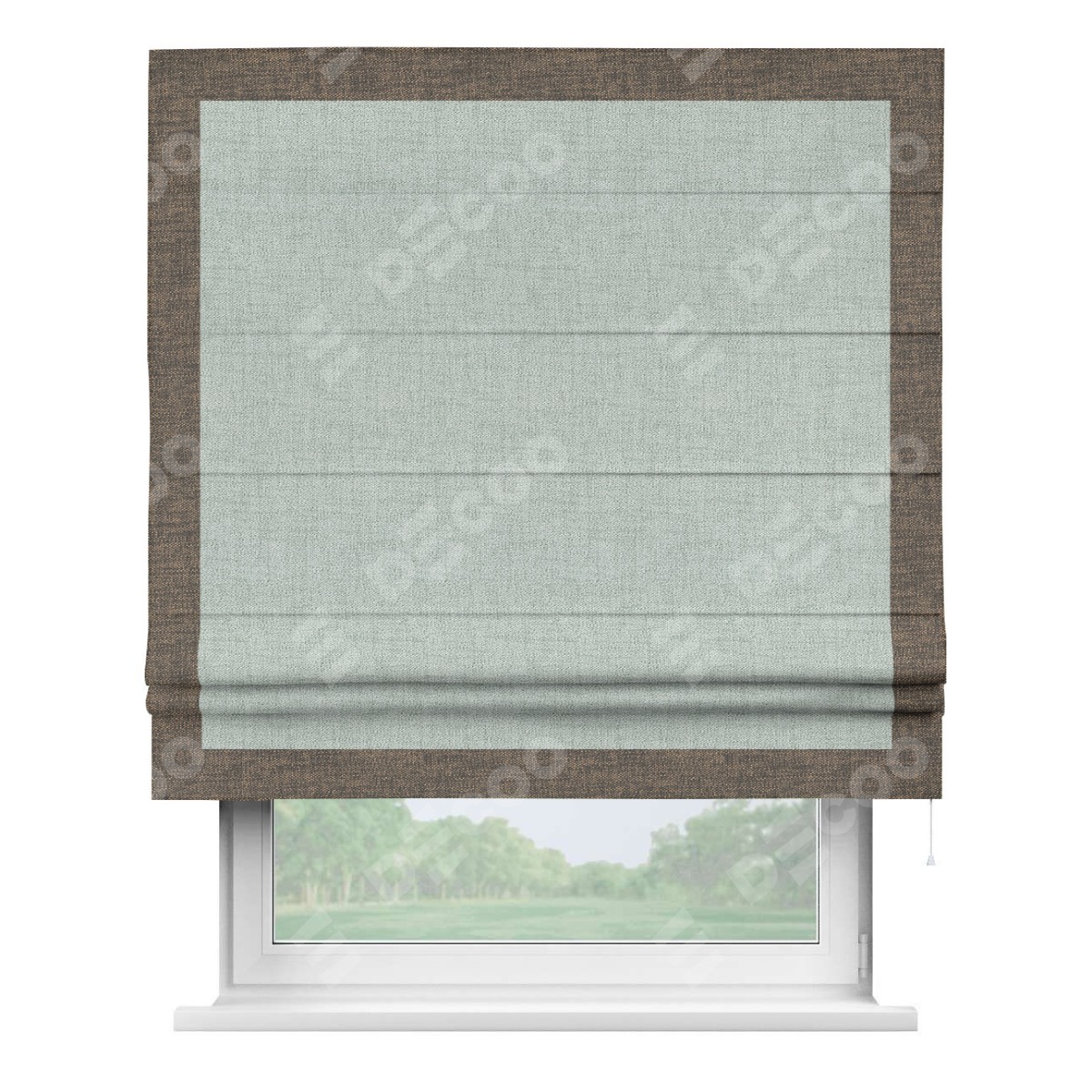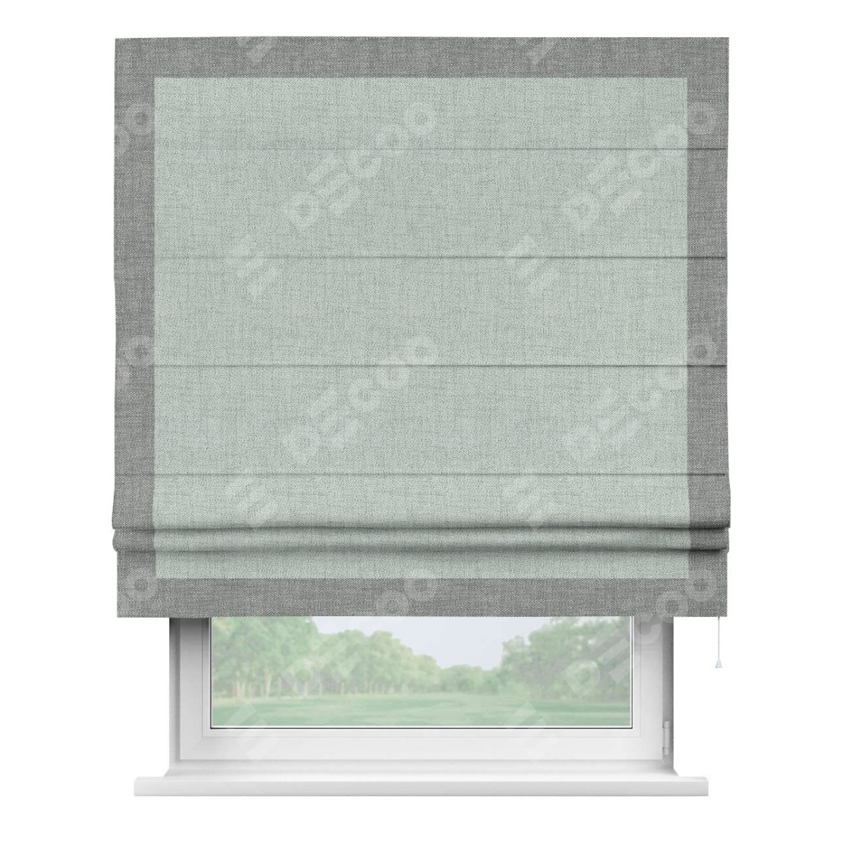 Римская штора производителя «Cortin», используется для проёма, пошита из ткани рогожка димаут серый, артикул 80426. Отделка шторы кантом «Чесс», ткань для канта используется из рогожки димаут разной расцветки на выбор. Имеет универсальный механизм и подходит для монтажа: на потолок, на стену и в нишу.