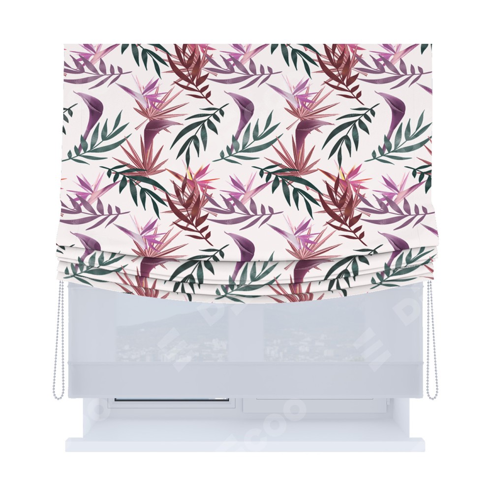 Римская штора «Кортин», день-ночь с мягкими складками, «Тропические побеги»