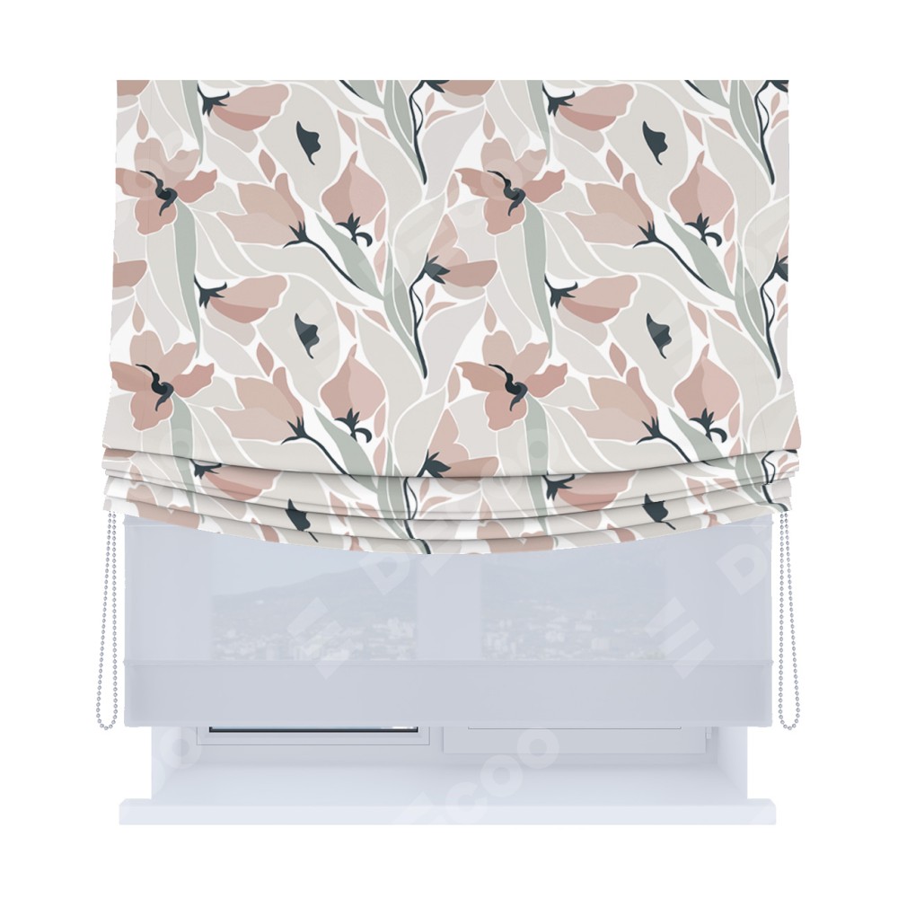 Римская штора «Кортин», день-ночь с мягкими складками, «Тюльпаны пастель»