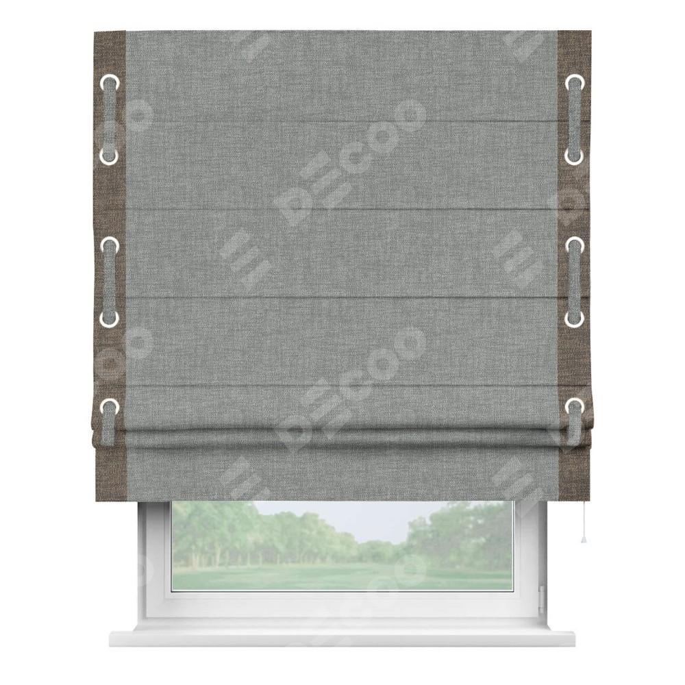 Римская штора «Кортин» с кантом Стрим Дуо (люверсы с пояском), для проема, ткань рогожка димаут, тёмно-серый