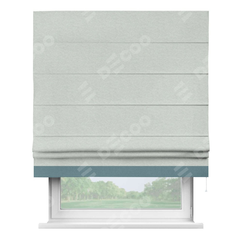 Римская штора производителя «Cortin», используется для проёма, пошита из ткани лён блэкаут белый, артикул 69451. Отделка шторы кантом «Джестер», ткань для канта используется из льна разной расцветки на выбор. Имеет универсальный механизм и подходит для монтажа: на потолок, на стену и в нишу.