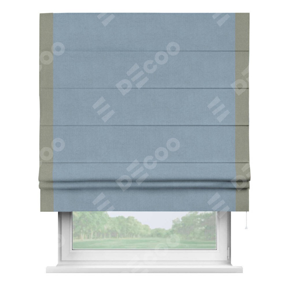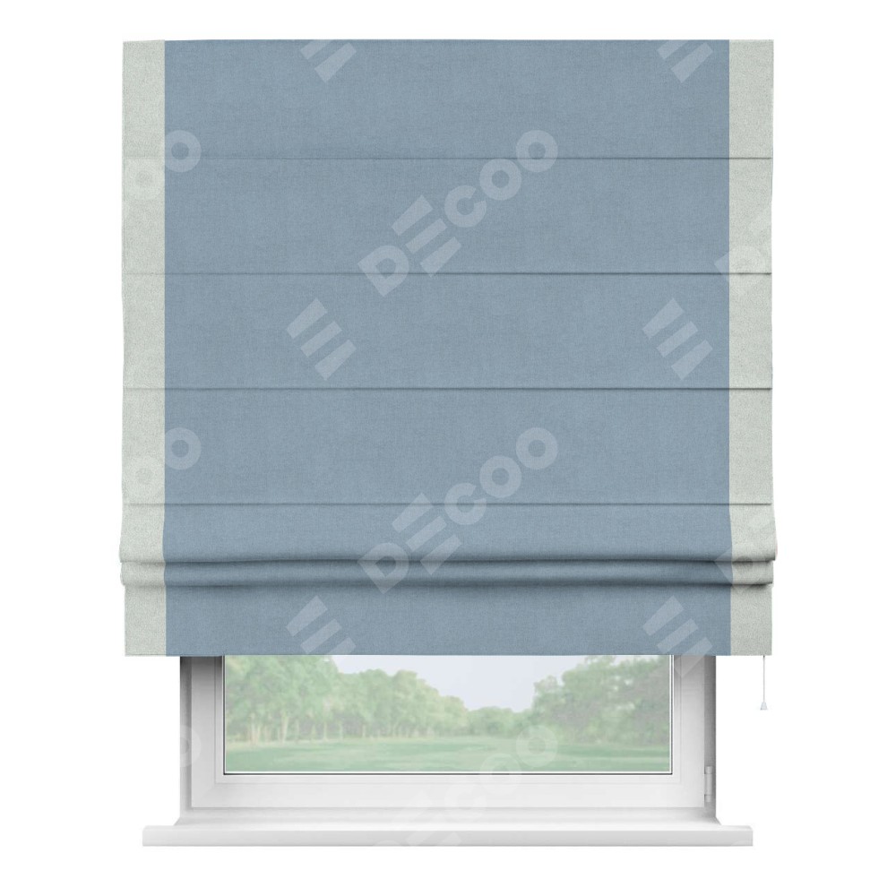 Римская штора «Кортин» с кантом Стрим Дуо, для проема, лён блэкаут голубой