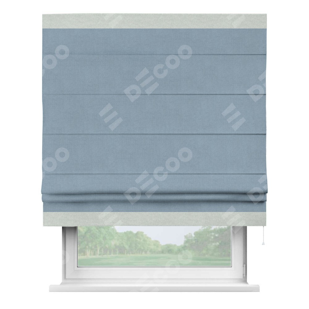 Римская штора «Кортин» с кантом Горизонт, для проема, лён блэкаут голубой