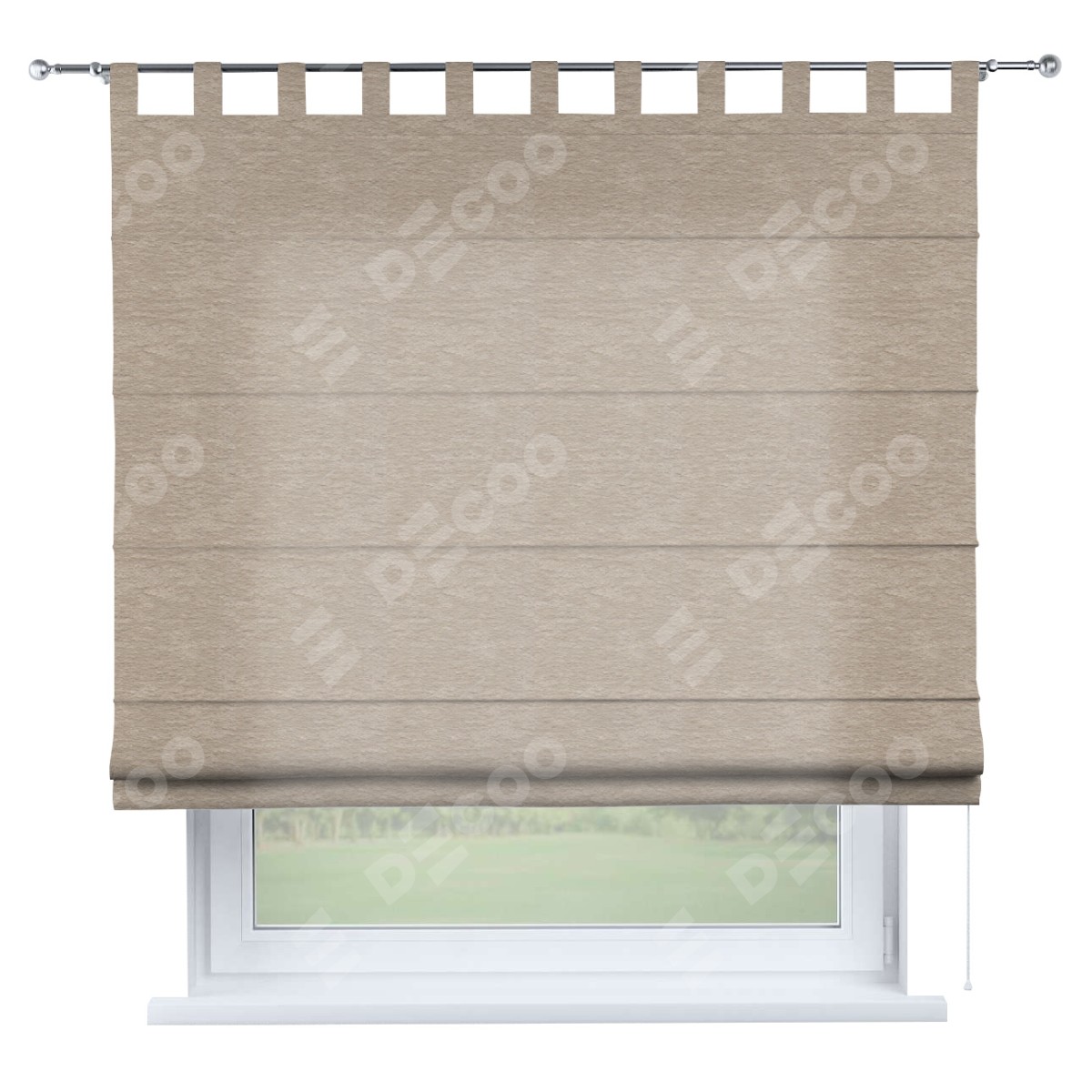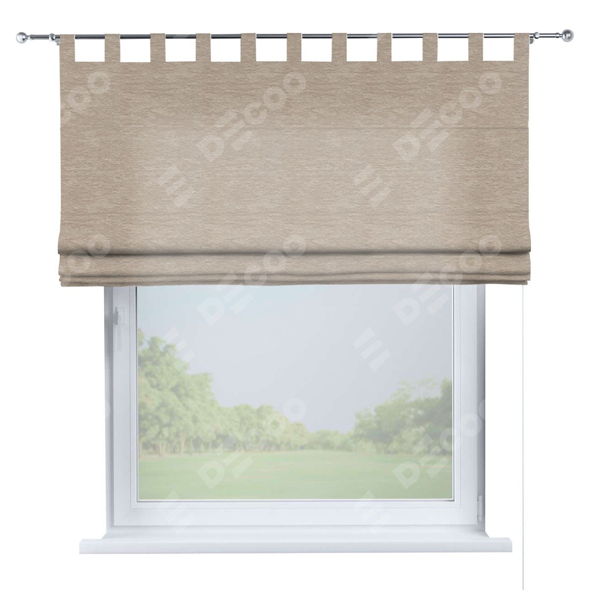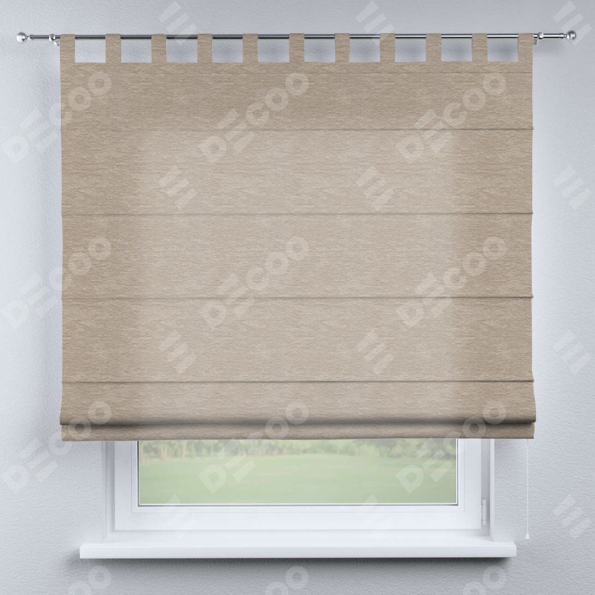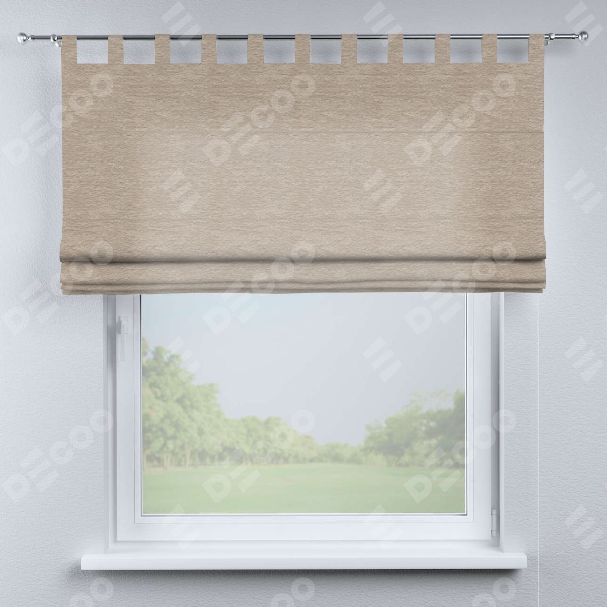 Римская штора производителя «Cortin», используется для проёма, пошита из ткани софт однотонный тёмно-бежевый, артикул ткани 1640. Данная модель пошита на петлях, комплектуется на выбор круглым карнизом и подходит для монтажа на стену. Римская штора на петлях имеет простую систему регулировки высоты, отличительным преимуществом данной модели является простой способ монтажа. Достаточно повесить ее на трубу и штора готова!