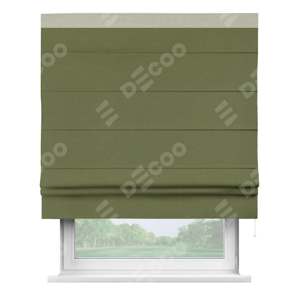 Римская штора «Кортин» с кантом Кинг, для проема, лён блэкаут оливковый