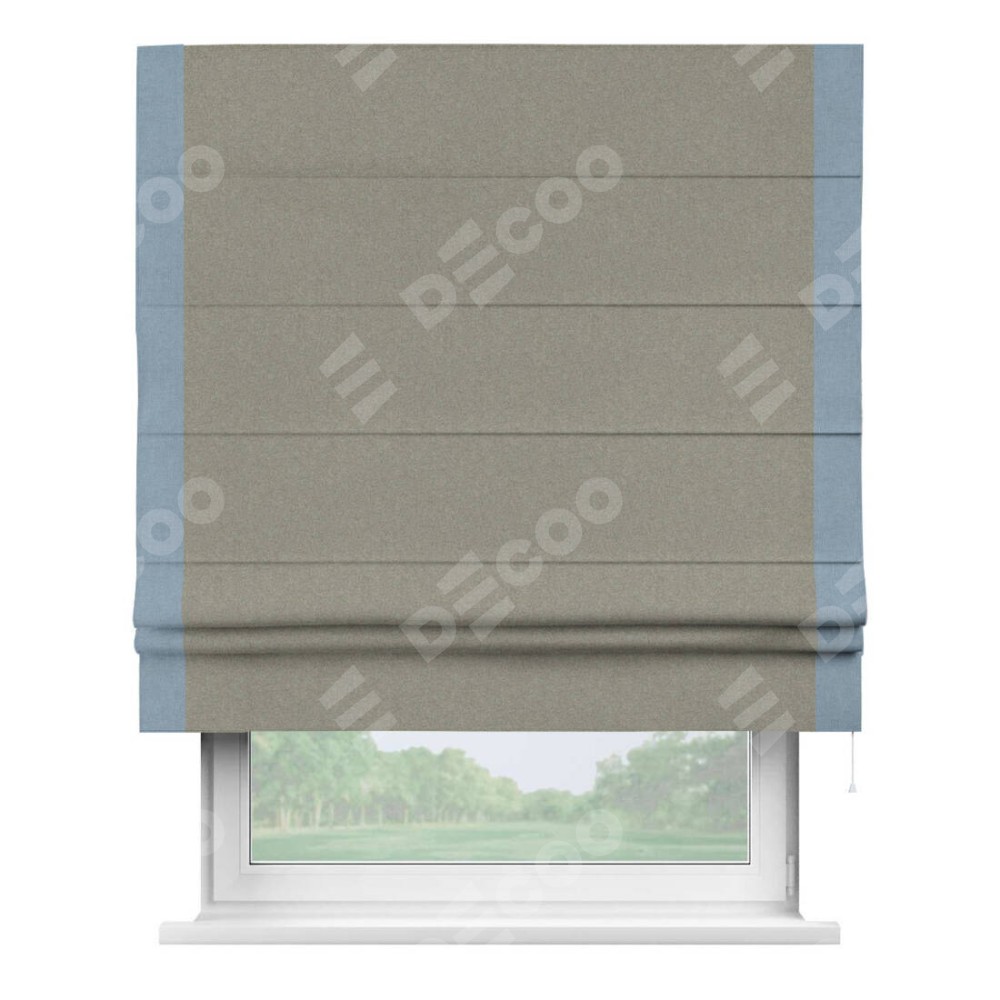 Римская штора производителя «Cortin», используется для проёма, пошита из ткани лён блэкаут светло-бежевый, артикул 69445. Отделка шторы кантом «Стрим Дуо», ткань для канта используется из льна разной расцветки на выбор. Имеет универсальный механизм и подходит для монтажа: на потолок, на стену и в нишу.