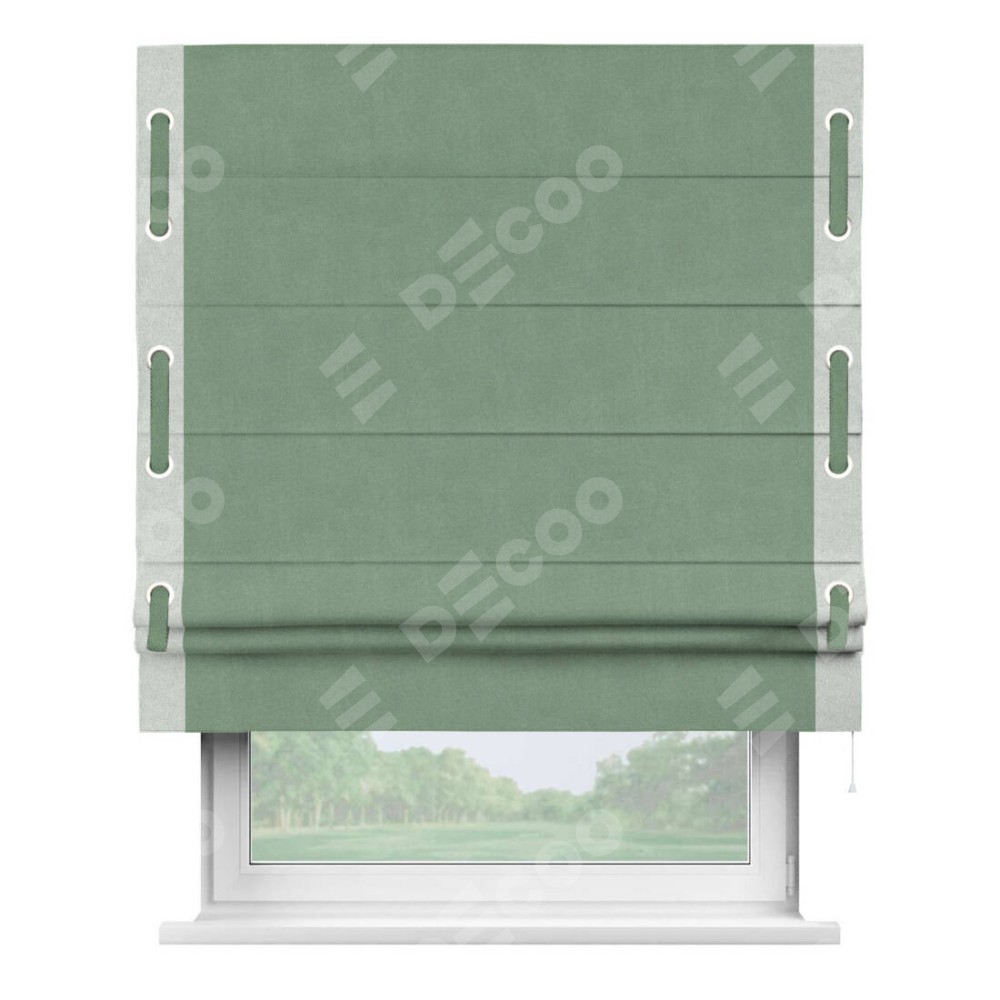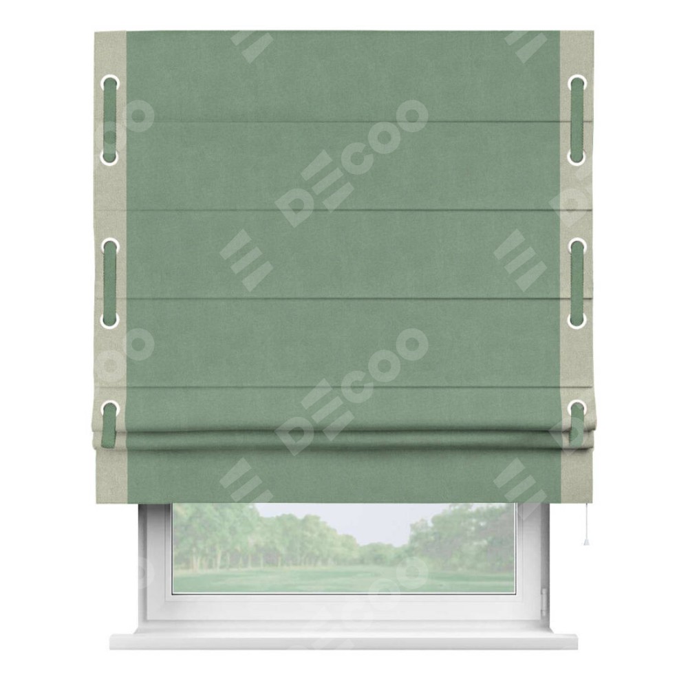 Римская штора «Кортин» с кантом Стрим Дуо (люверсы с пояском), для проема, лён блэкаут светло-бирюзовый