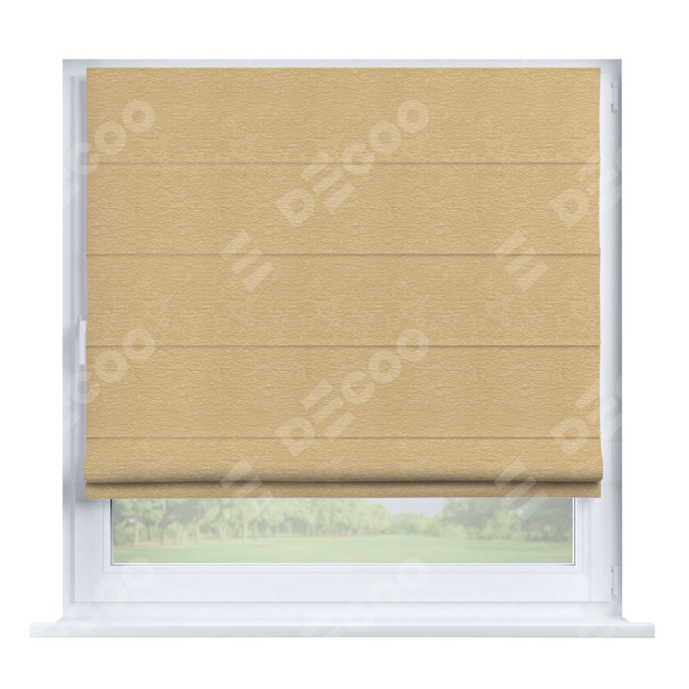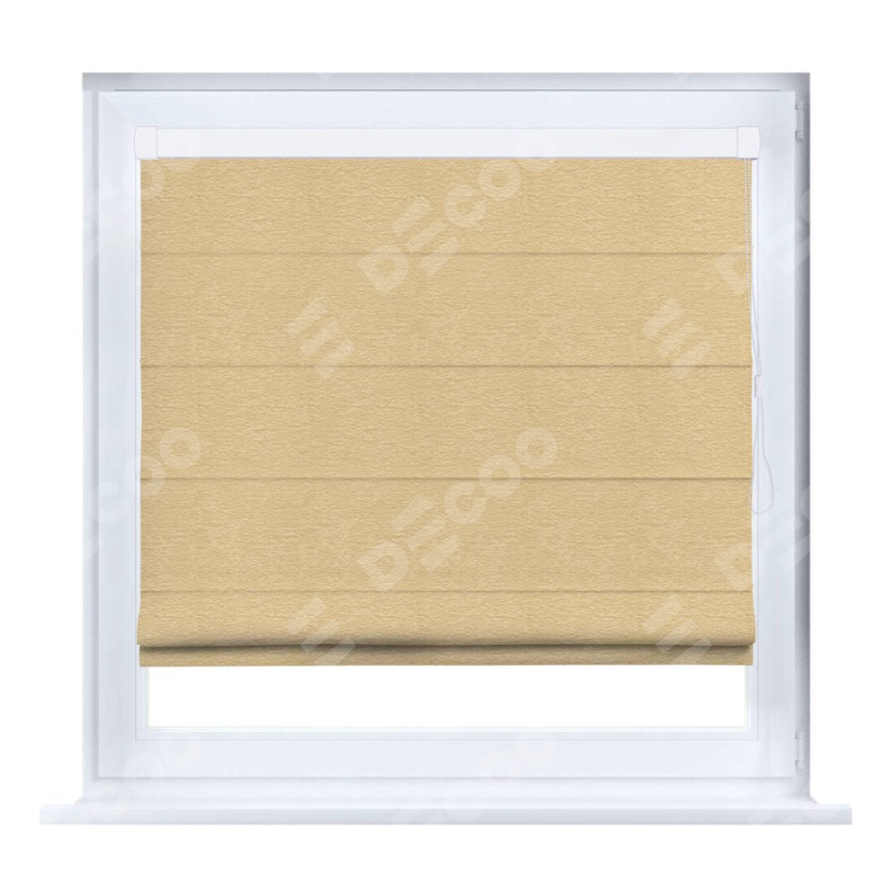 Римская штора производителя «Cortin», устанавливается на створку окна, пошита из ткани софт однотонный бежевый, артикул 4202 05. Штора шьётся по индивидуальным размерам, для данного типа римской шторы возможная ширина от 35 до 150 см., высота до 250 см.
