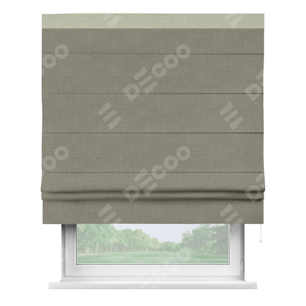 Римская штора производителя «Cortin», используется для проёма, пошита из ткани лён блэкаут шампань, артикул 69449. Отделка шторы кантом «Кинг», ткань для канта используется из льна разной расцветки на выбор. Имеет универсальный механизм и подходит для монтажа: на потолок, на стену и в нишу.