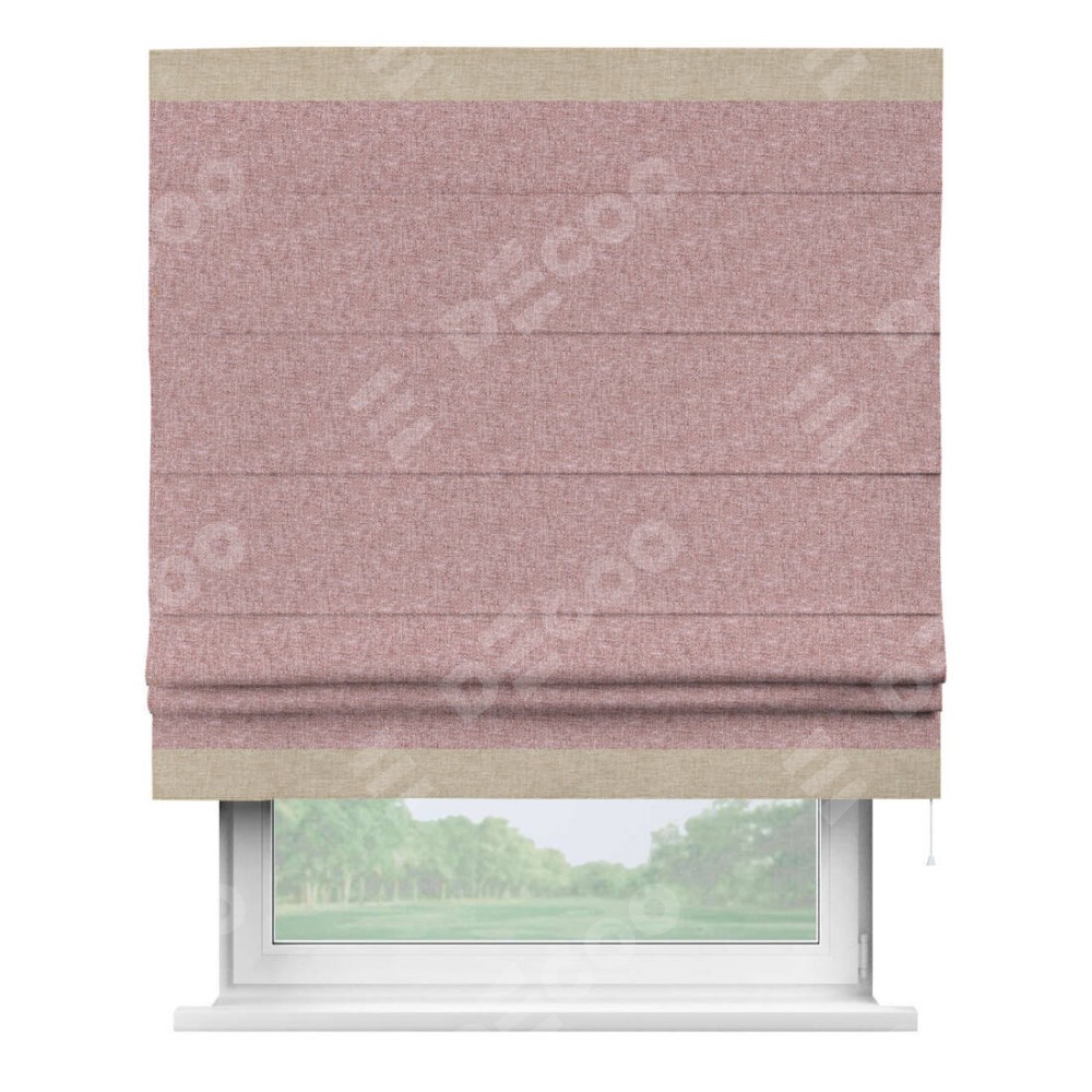 Римская штора «Кортин» с кантом Горизонт, для проема, ткань лён кашемир розовая пудра