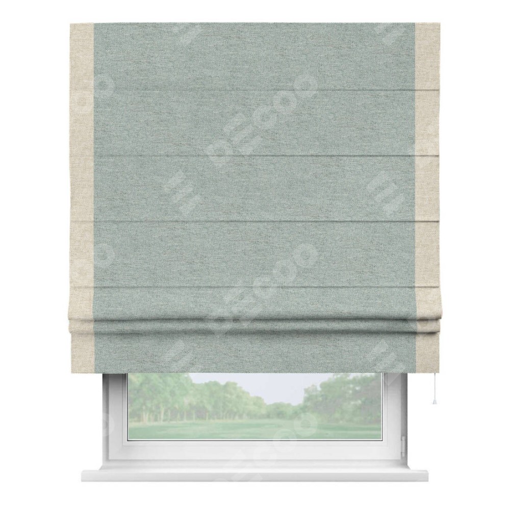 Римская штора производителя «Cortin», используется для проёма, пошита из ткани стиф димаут светло-серый, артикул 44025. Отделка шторы кантом «Стрим Дуо», ткань для канта используется из стифа разной расцветки на выбор. Имеет универсальный механизм и подходит для монтажа: на потолок, на стену и в нишу.