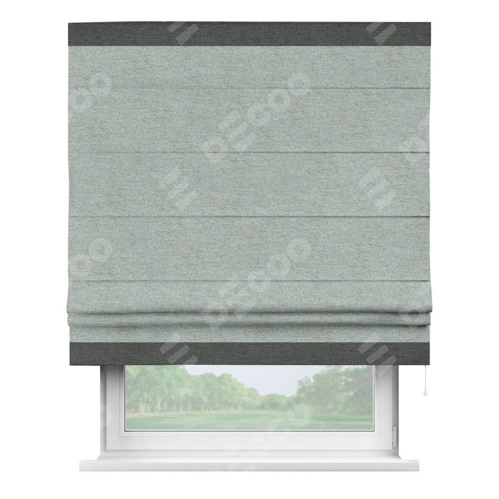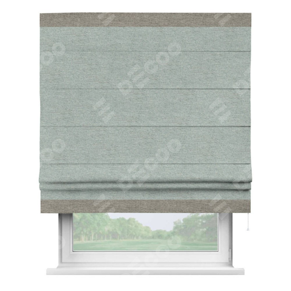 Римская штора производителя «Cortin», используется для проёма, пошита из ткани стиф димаут светло-серый, артикул 44025. Отделка шторы кантом «Горизонт», ткань для канта используется из стифа разной расцветки на выбор. Имеет универсальный механизм и подходит для монтажа: на потолок, на стену и в нишу.