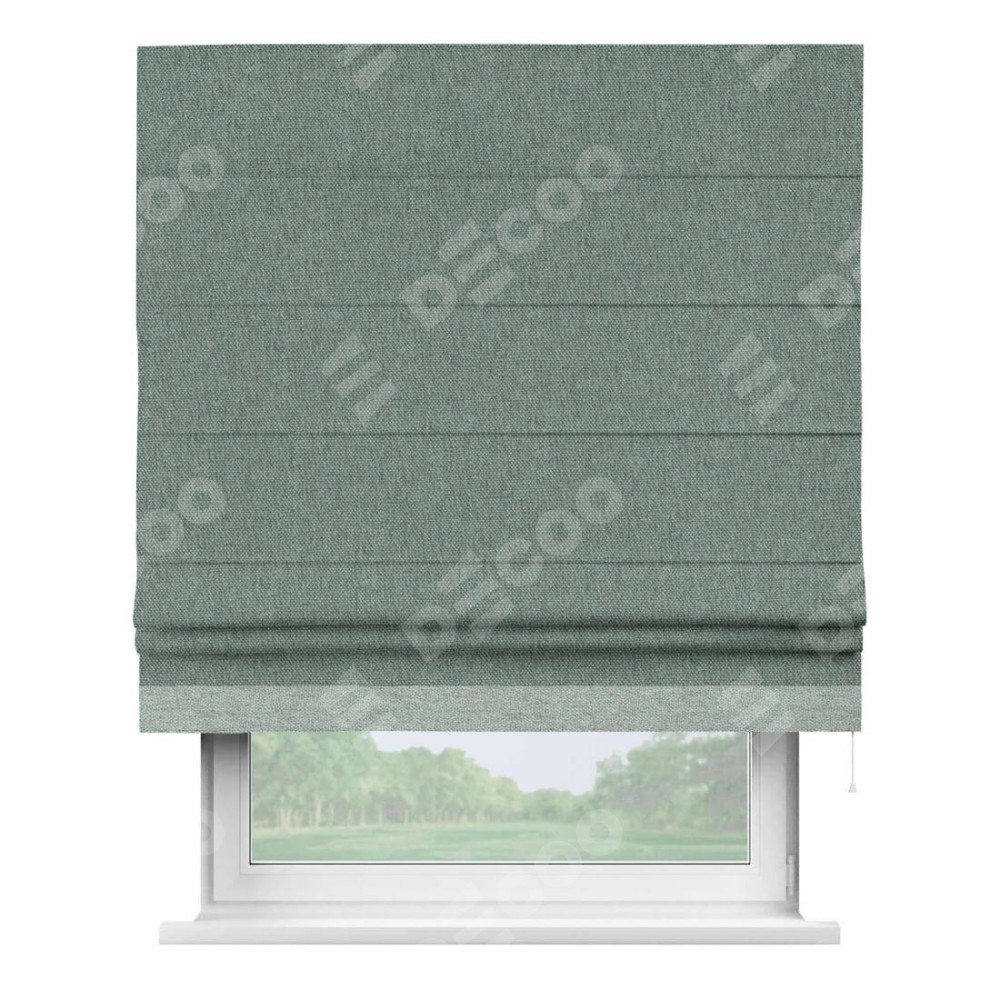 Римская штора производителя «Cortin», используется для проёма, пошита из ткани стиф димаут серо-голубой, артикул 44029. Отделка шторы кантом «Джестер», ткань для канта используется из стифа разной расцветки на выбор. Имеет универсальный механизм и подходит для монтажа: на потолок, на стену и в нишу.