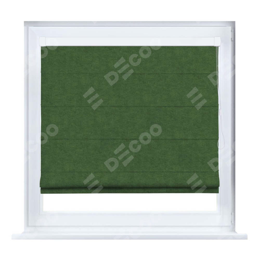 Римская штора производителя «Cortin», устанавливается на створку окна, пошита из ткани канвас зелёный, артикул v-16. Штора шьётся по индивидуальным размерам, для данного типа римской шторы возможная ширина от 35 до 150 см., высота до 250 см.
