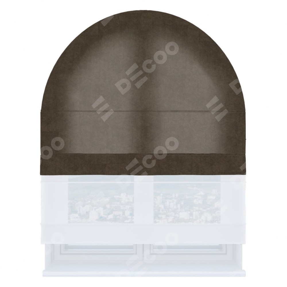 Римская штора день-ночь производителя «Cortin», используется для арочного проёма, пошита из двух полотен, с лицевой стороны канвас коричневый артикул v-29, вторая ткань тюль (по стандарту комплектуется тюль белого цвета артикул V-01). Штора шьётся по индивидуальным размерам, для данного типа римской шторы возможная ширина от 60 до 300 см. Удобное управление каждой шторой отдельно.